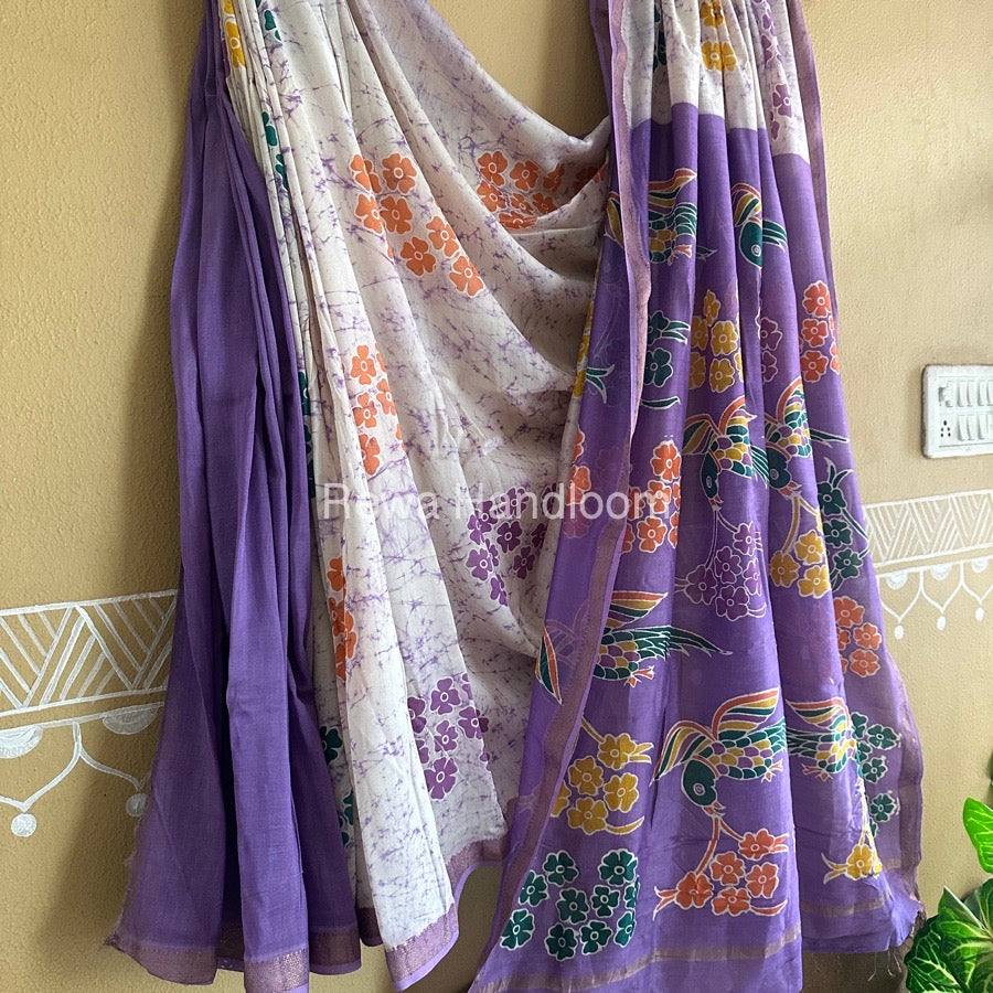 Maheshwari Purple Batik Indonesian Print Saree IBS043