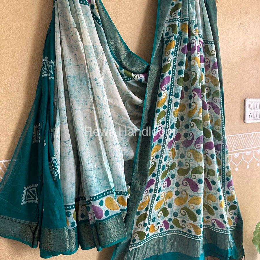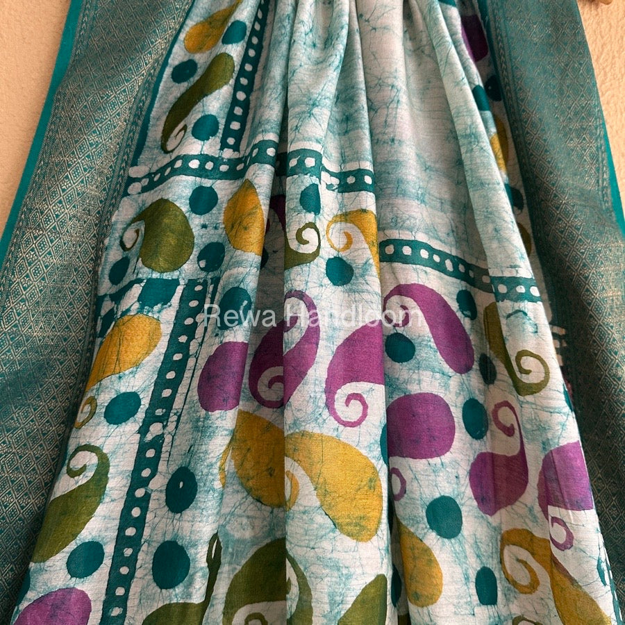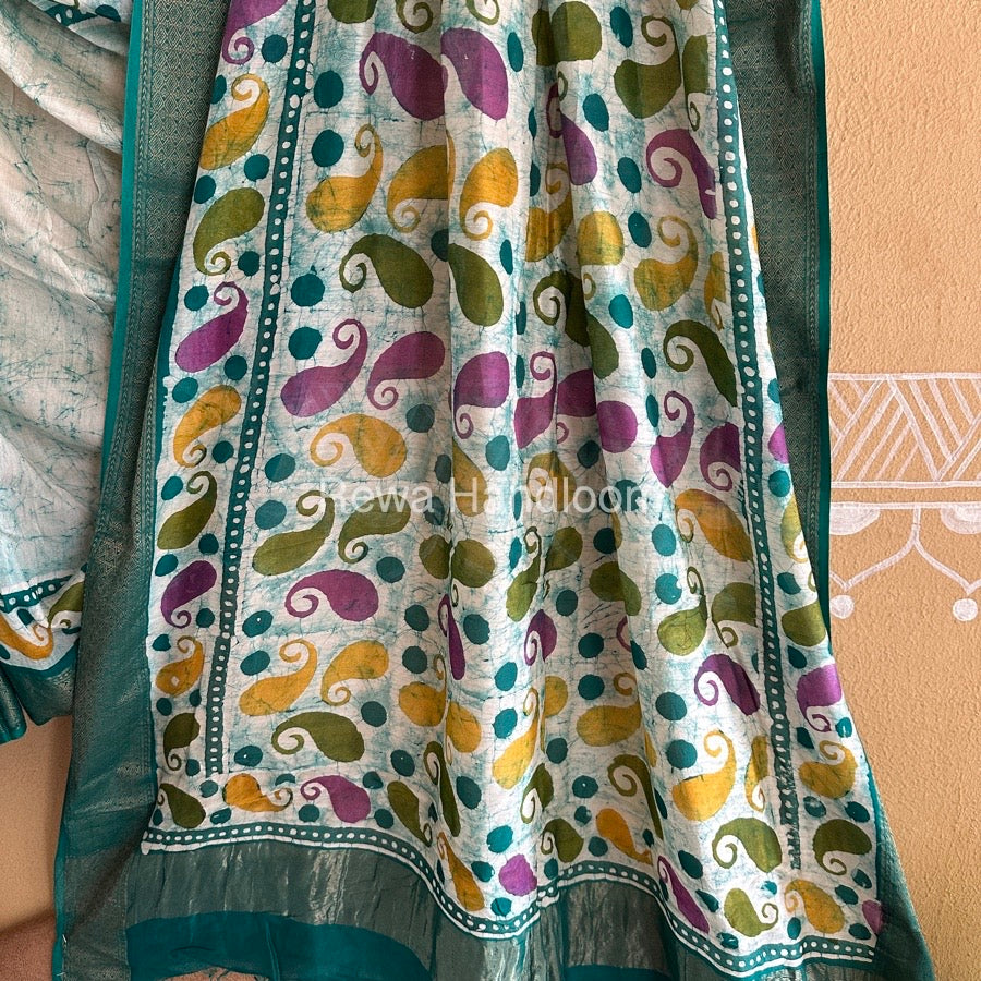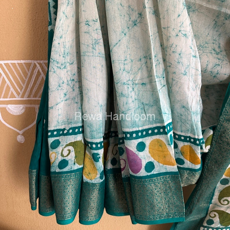 Maheshwari Rama Green Batik Indonesian Print Saree MBSS01