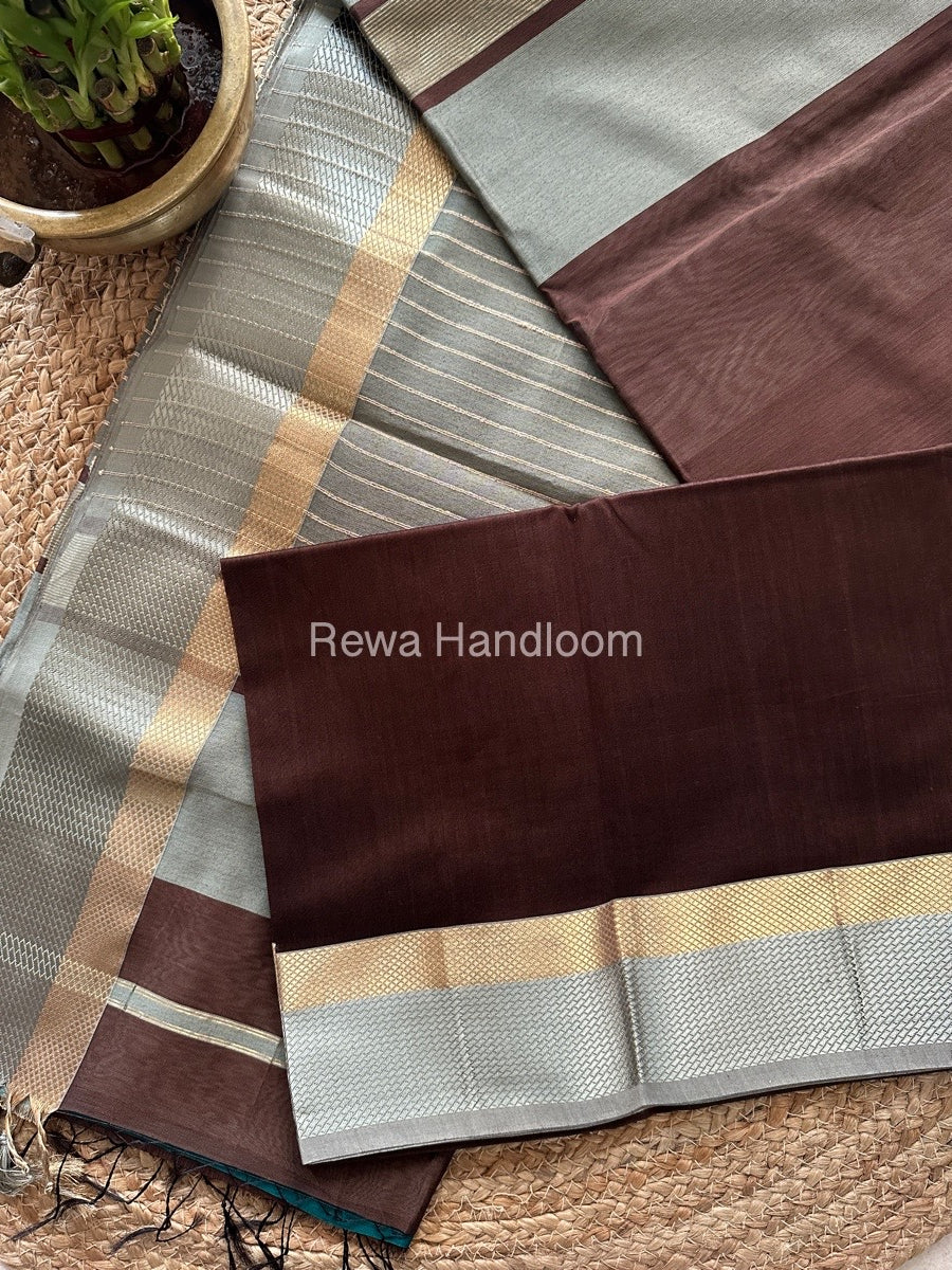 Maheshwari Brown Resham Thread Border Saree RTS055