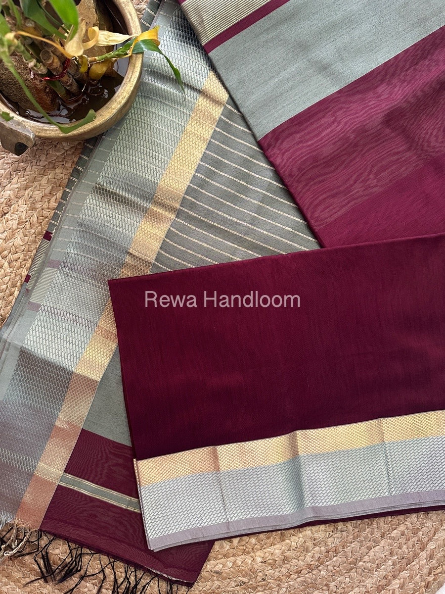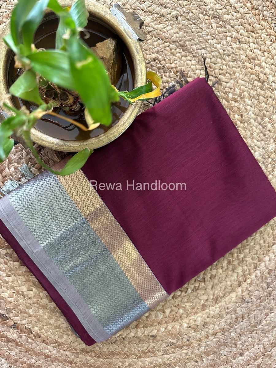 Maheshwari Wine Resham Thread Border Saree RTS049