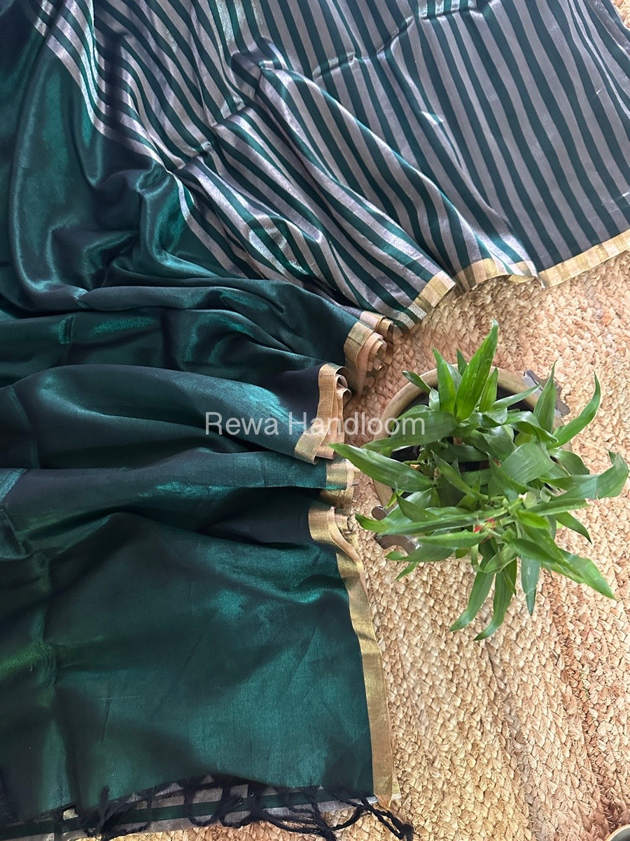 Exclusive Maheshwari Bottle Green Four Paddle Weaving Saree FPS01