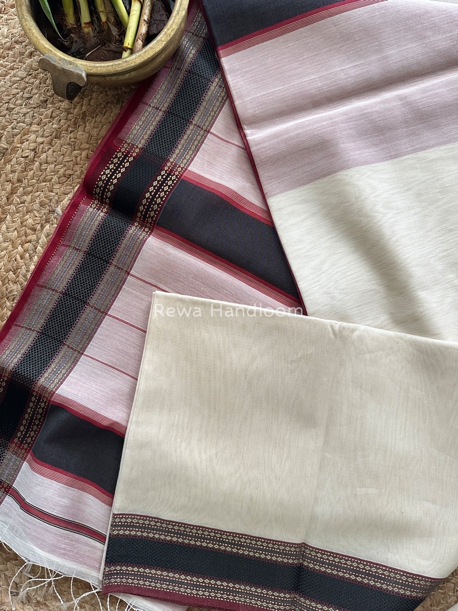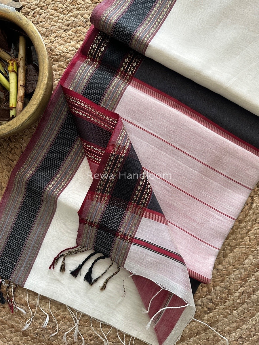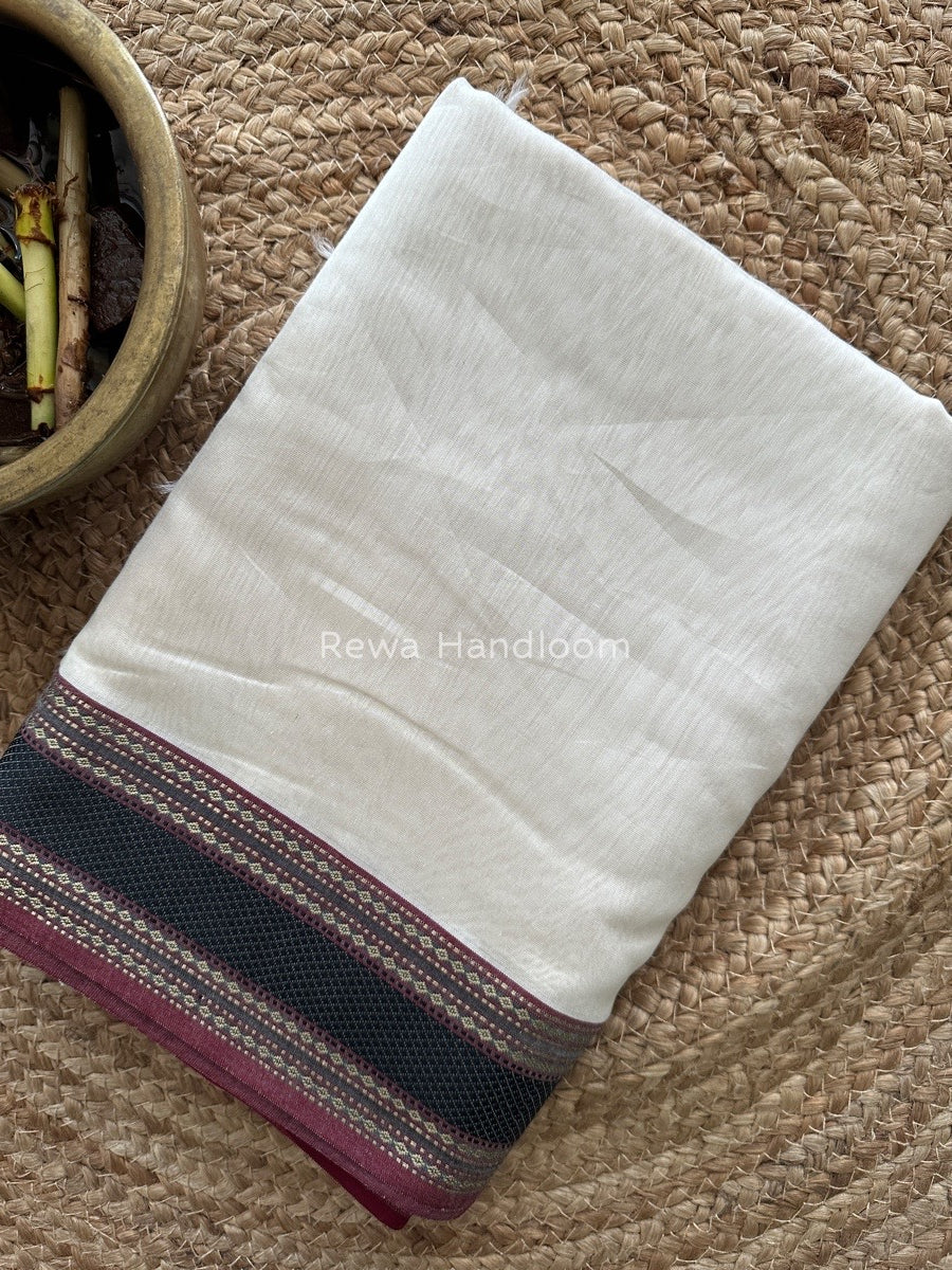 Exclusive Maheshwari White Zari Border Saree EZ09