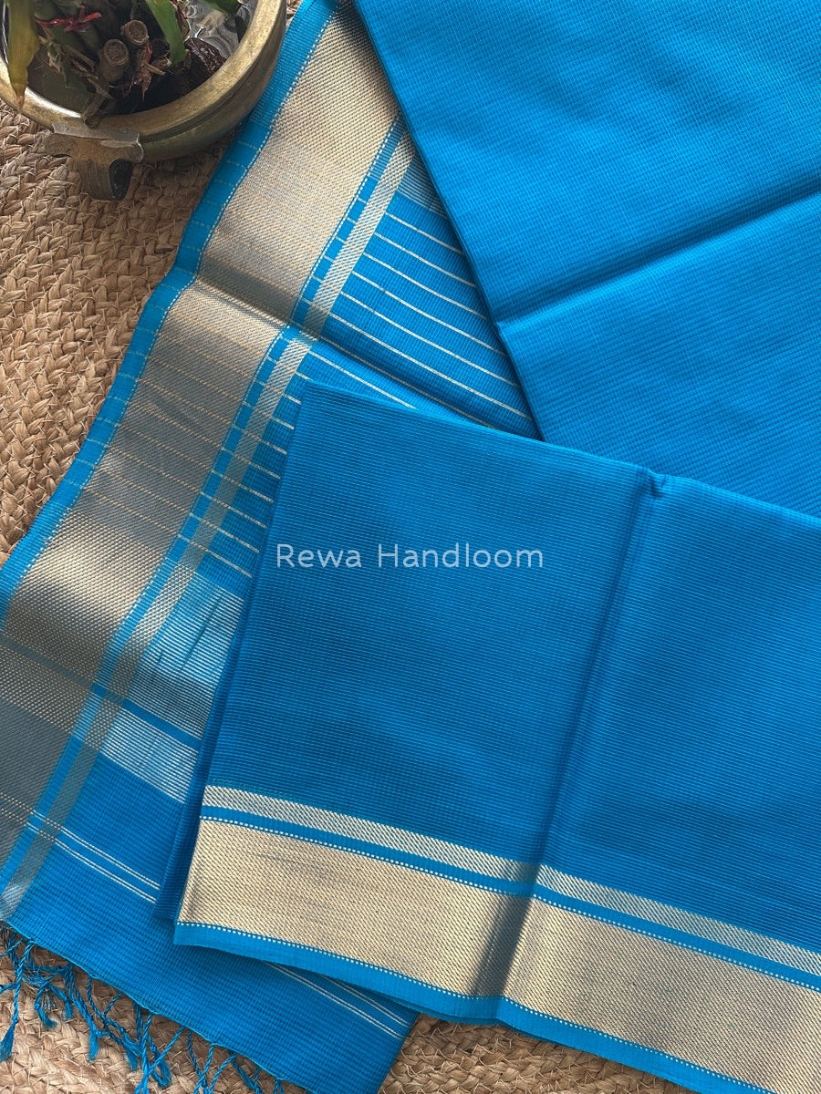 Exclusive Maheswari Self Checks Blue Saree MCS052