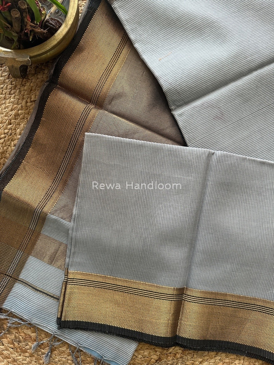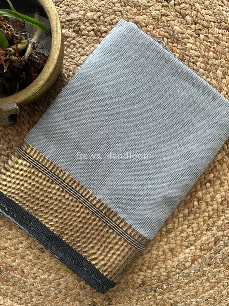 Exclusive Maheswari Self Checks Grey Saree MCS056