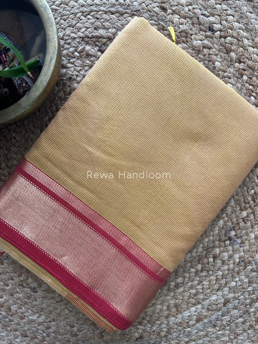 Exclusive Maheswari Self Checks Light Yellow Saree MCS050