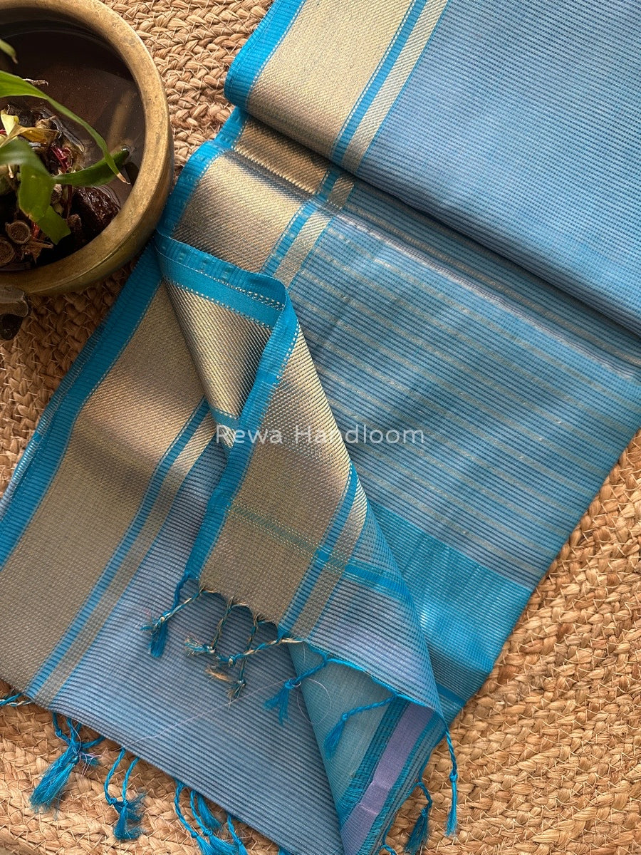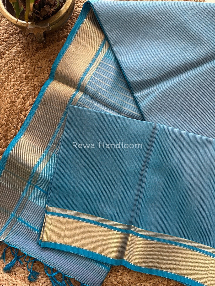 Exclusive Maheswari Self Checks Sky Blue Saree MCS049