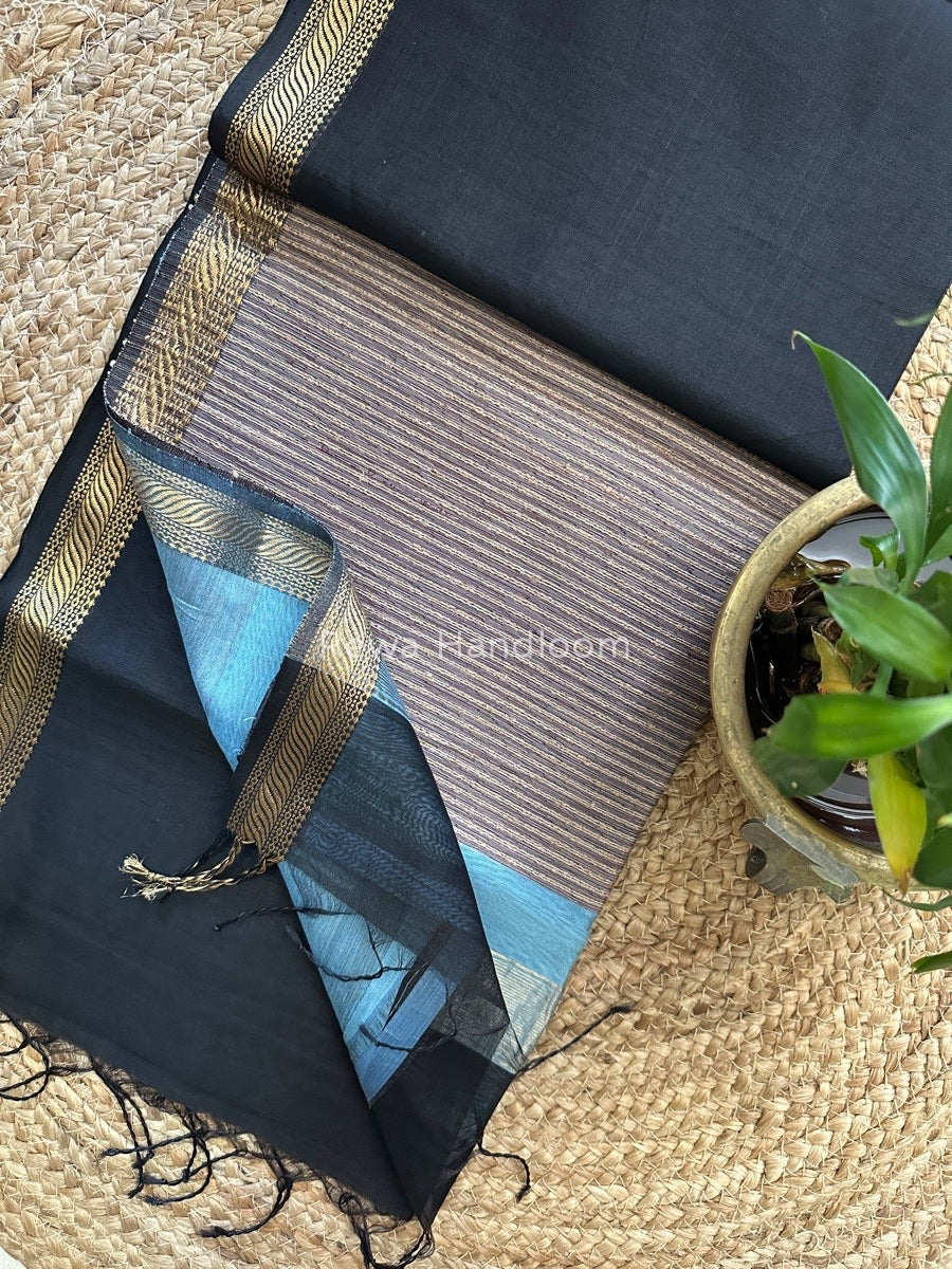 Maheshwari Black Gicha Weaving Saree GPS012