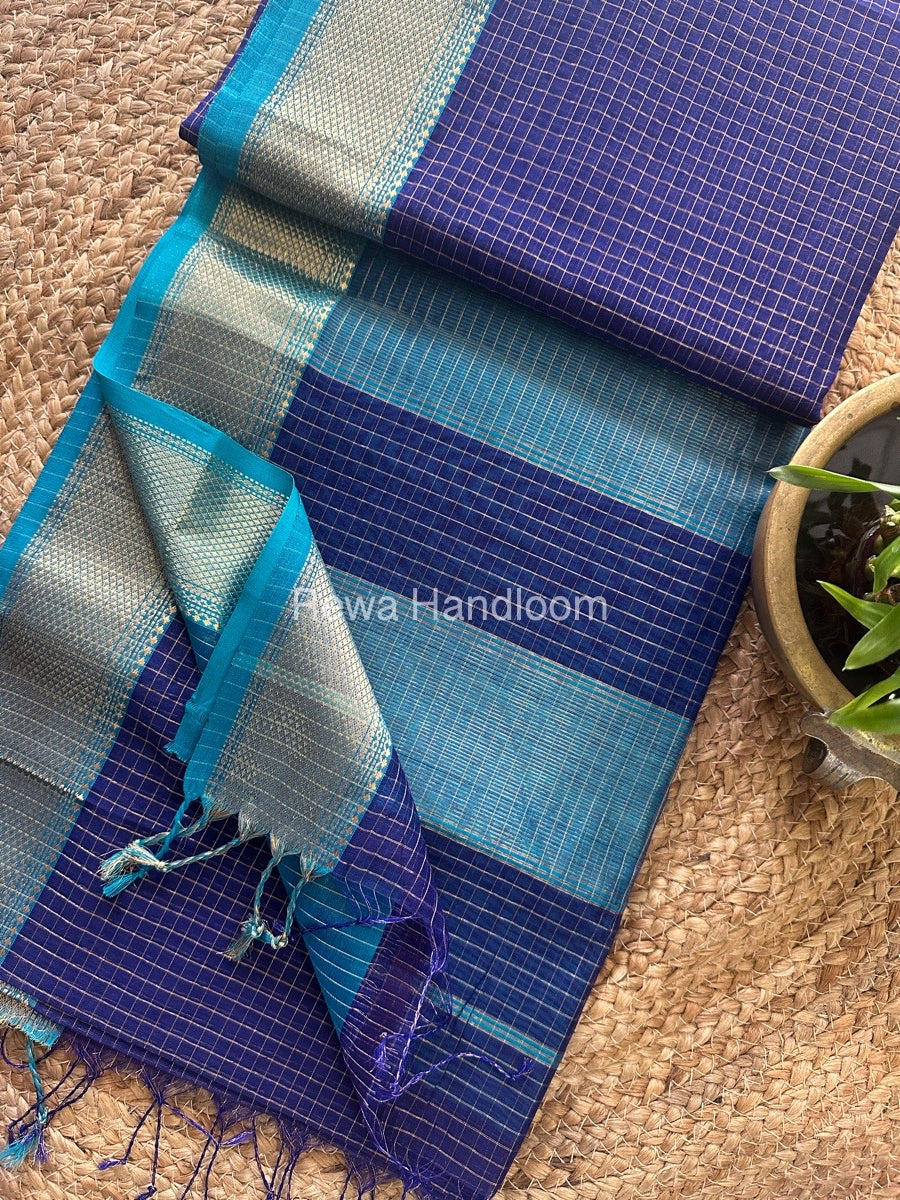 Maheshwari Blue Zari Checks Saree ZCHX300