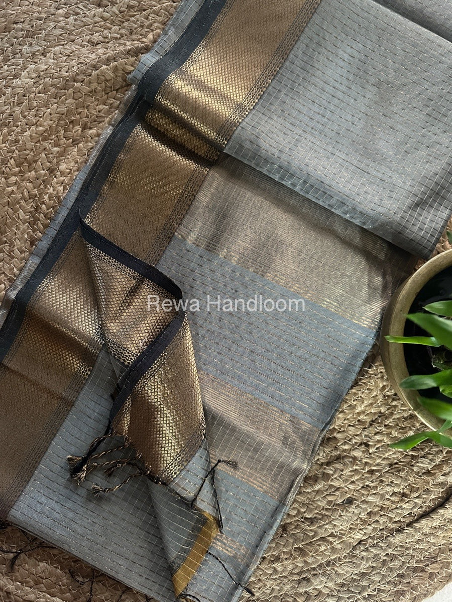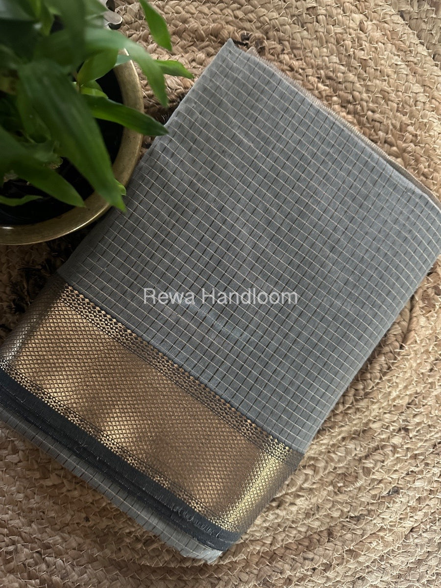 Maheshwari Grey Zari Checks Saree ZCHX291