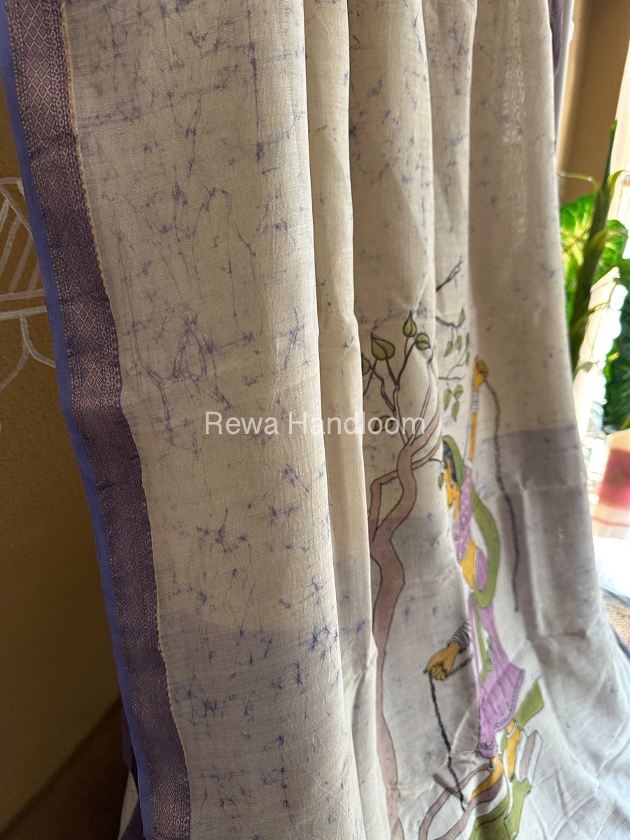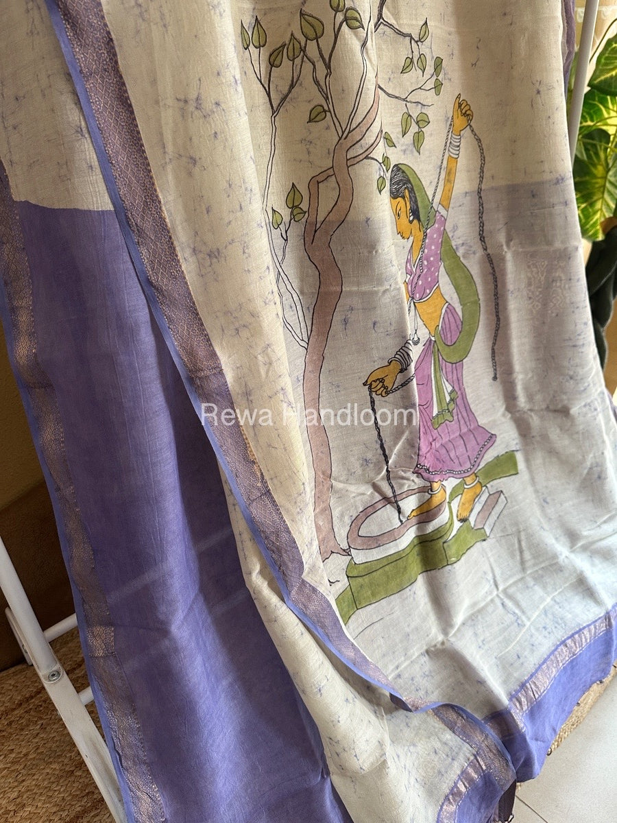 Maheshwari Light Lavender Batik Figure Handpainted Saree MFPS08