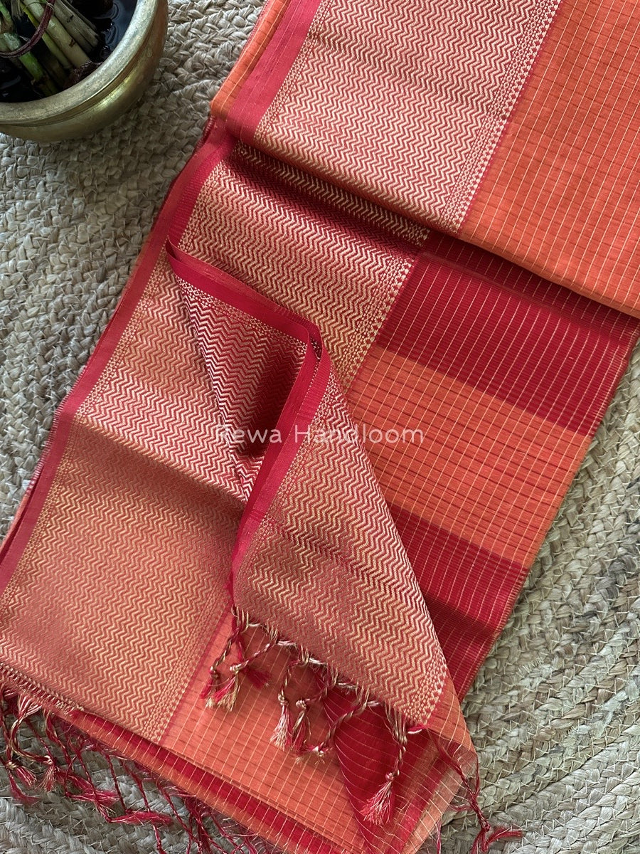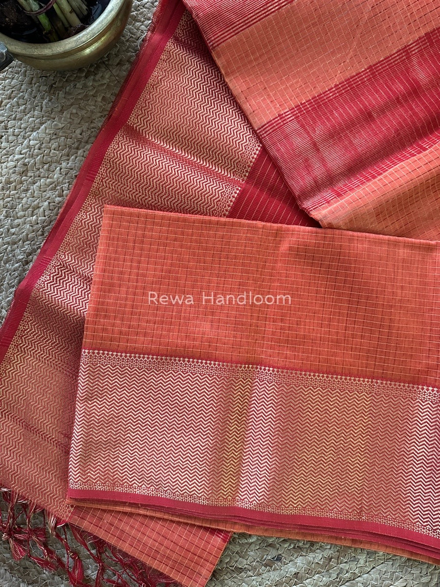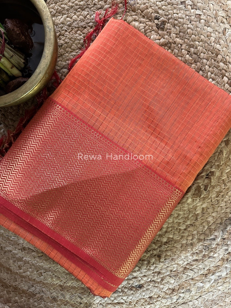 Maheshwari Light Orange Skirt Checks Saree SCS039