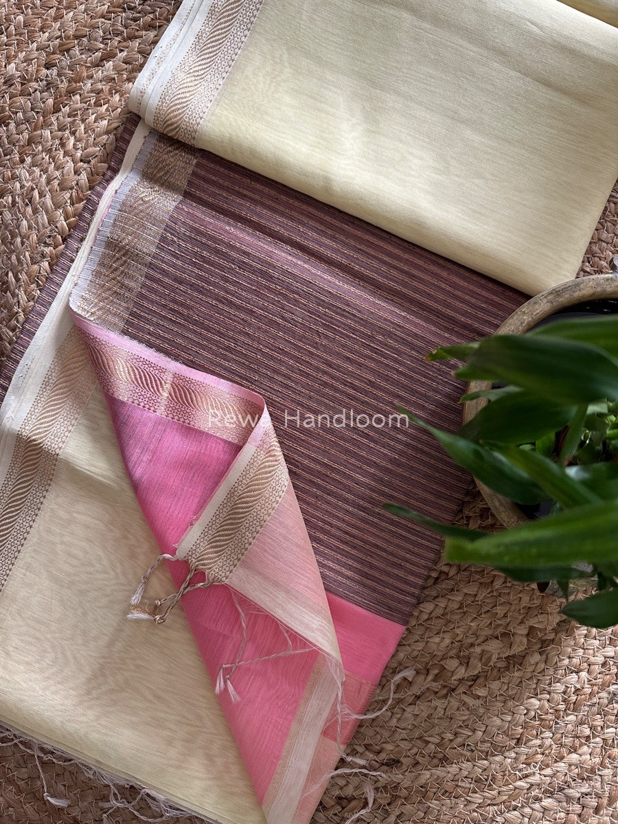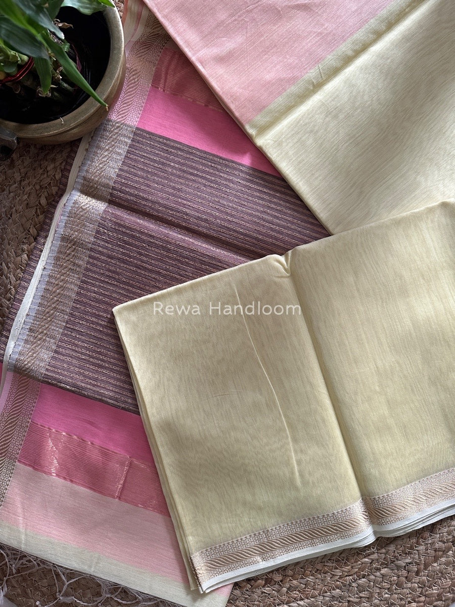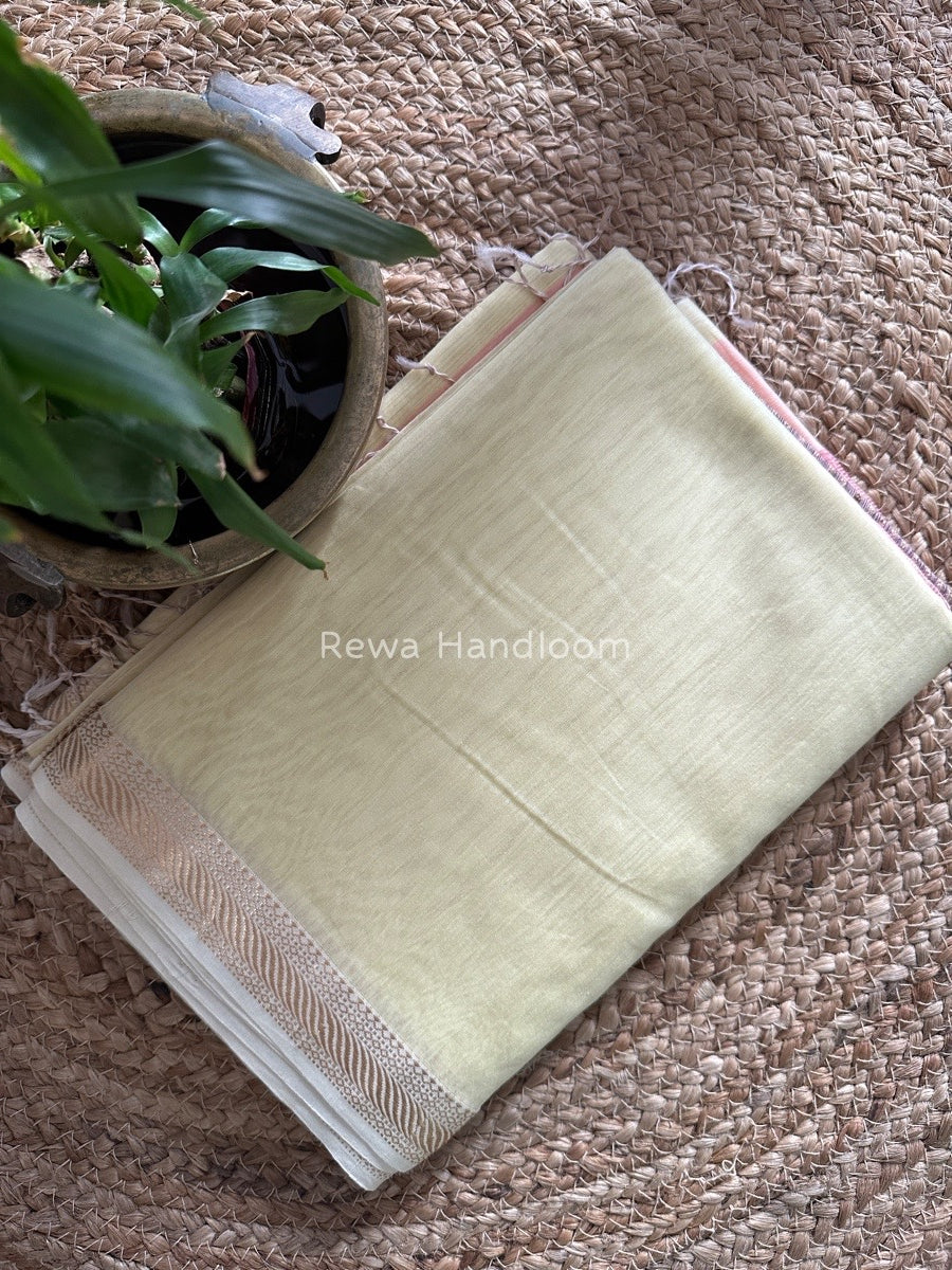 Maheshwari Light Yellow Gicha Weaving Saree GPS015