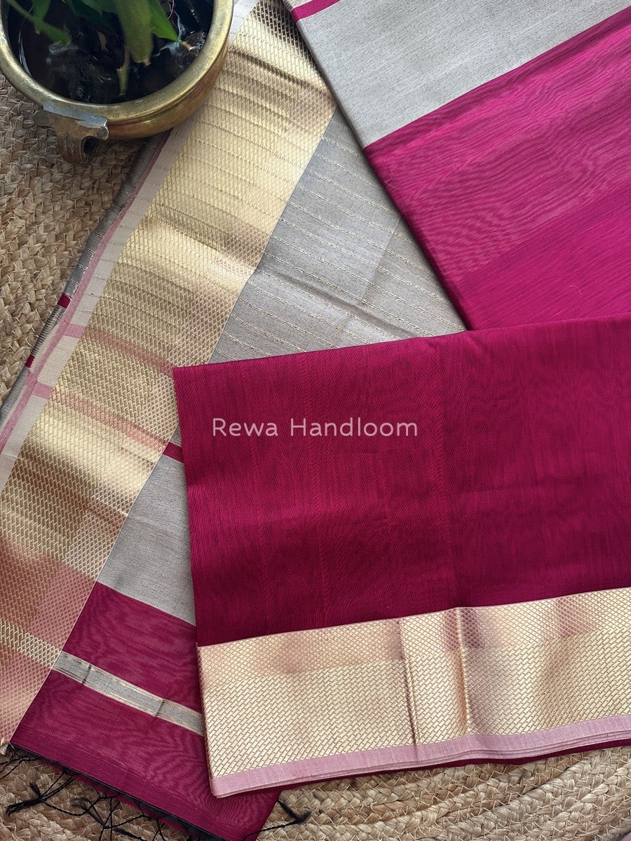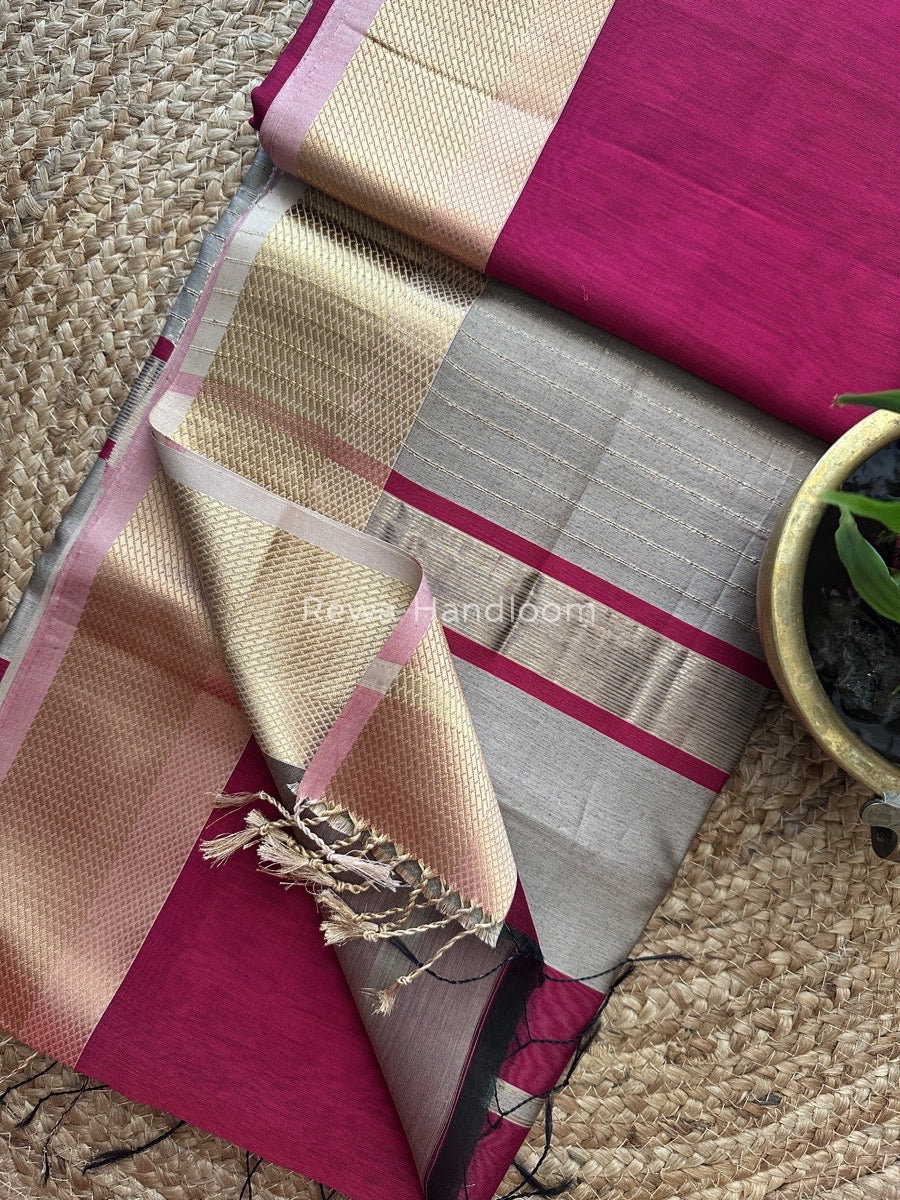 Maheshwari Magenta Resham Thread Border Saree RTS09