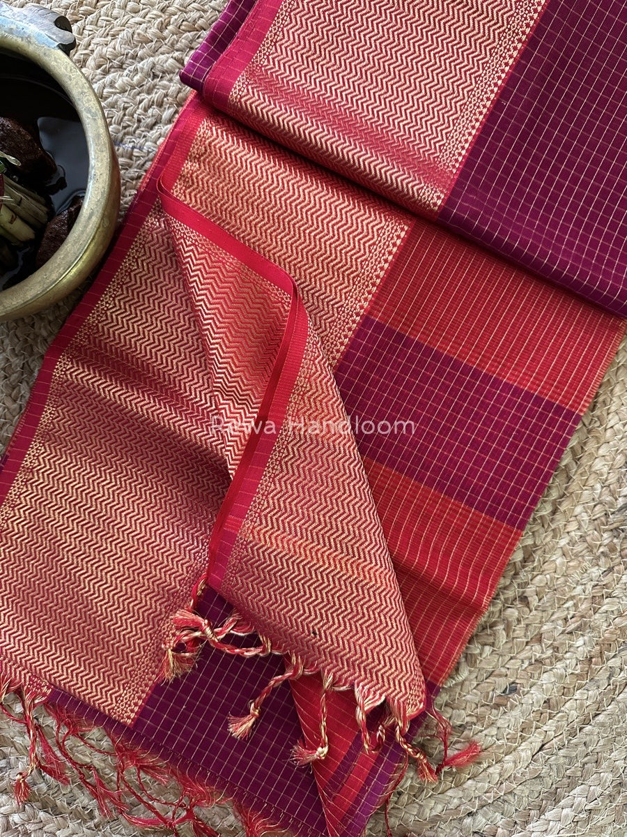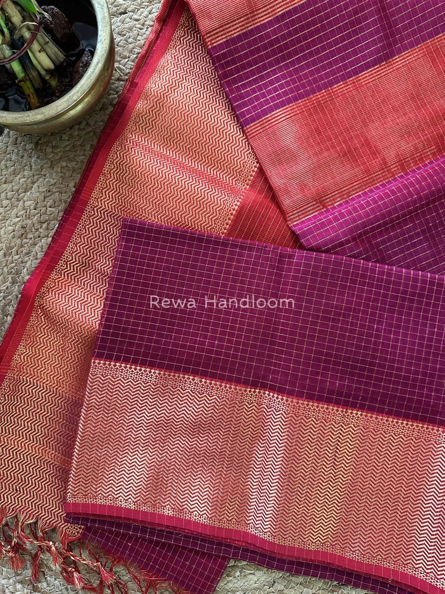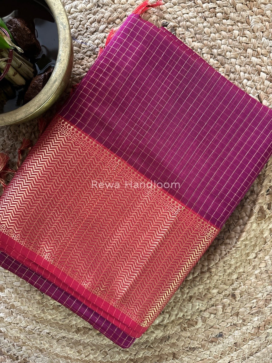 Maheshwari Magenta Skirt Checks Saree SCS033