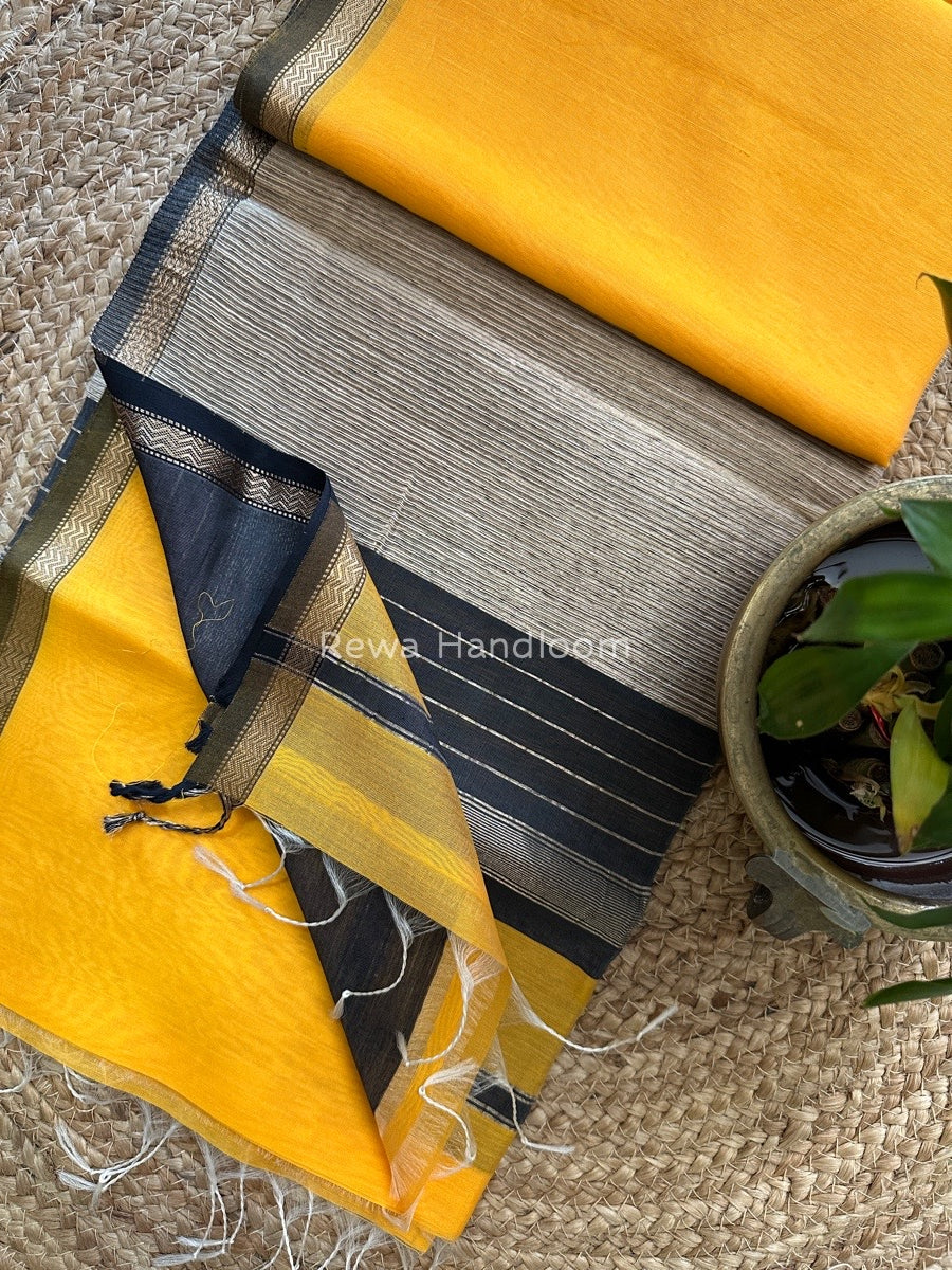 Maheshwari Mango Yellow Gicha Weaving Saree GPS06