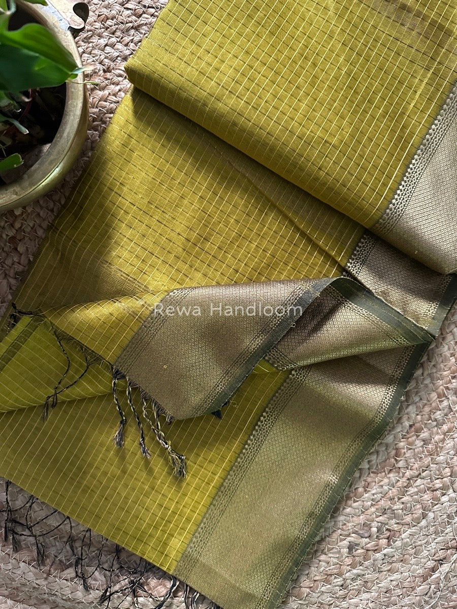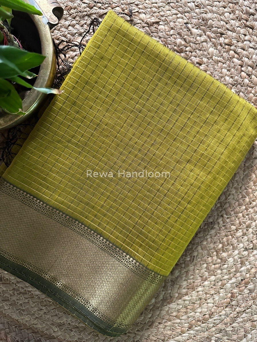 Maheshwari Mehendi Green Zari Checks Saree ZCHX230