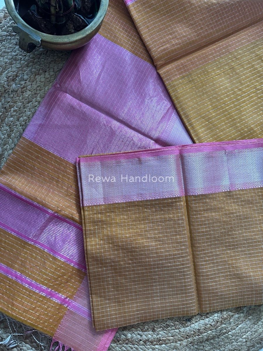 Maheshwari Mustard Yellow Silver Zari Checks Silk Saree SZ063