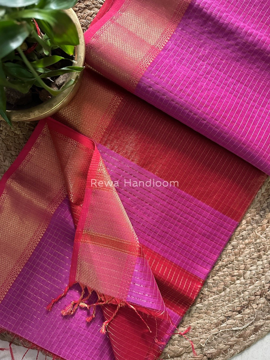 Maheshwari Onion Pink Zari Checks Saree ZCHX223