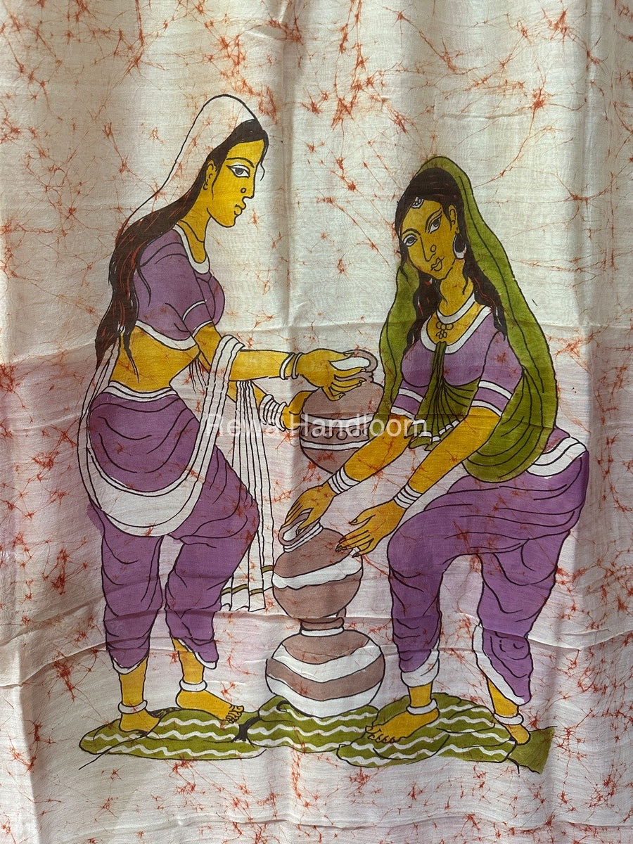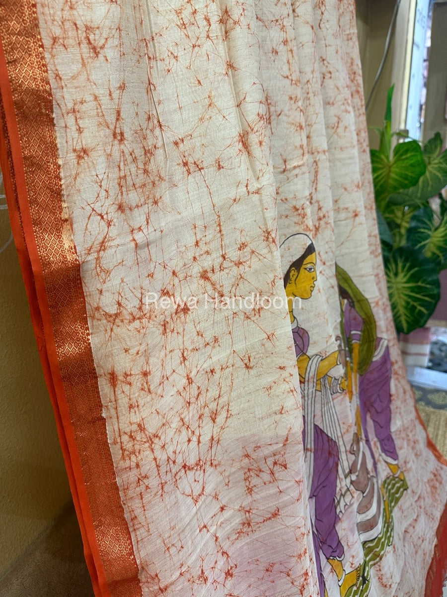 Maheshwari Orange Batik Figure Handpainted Saree MFPS013