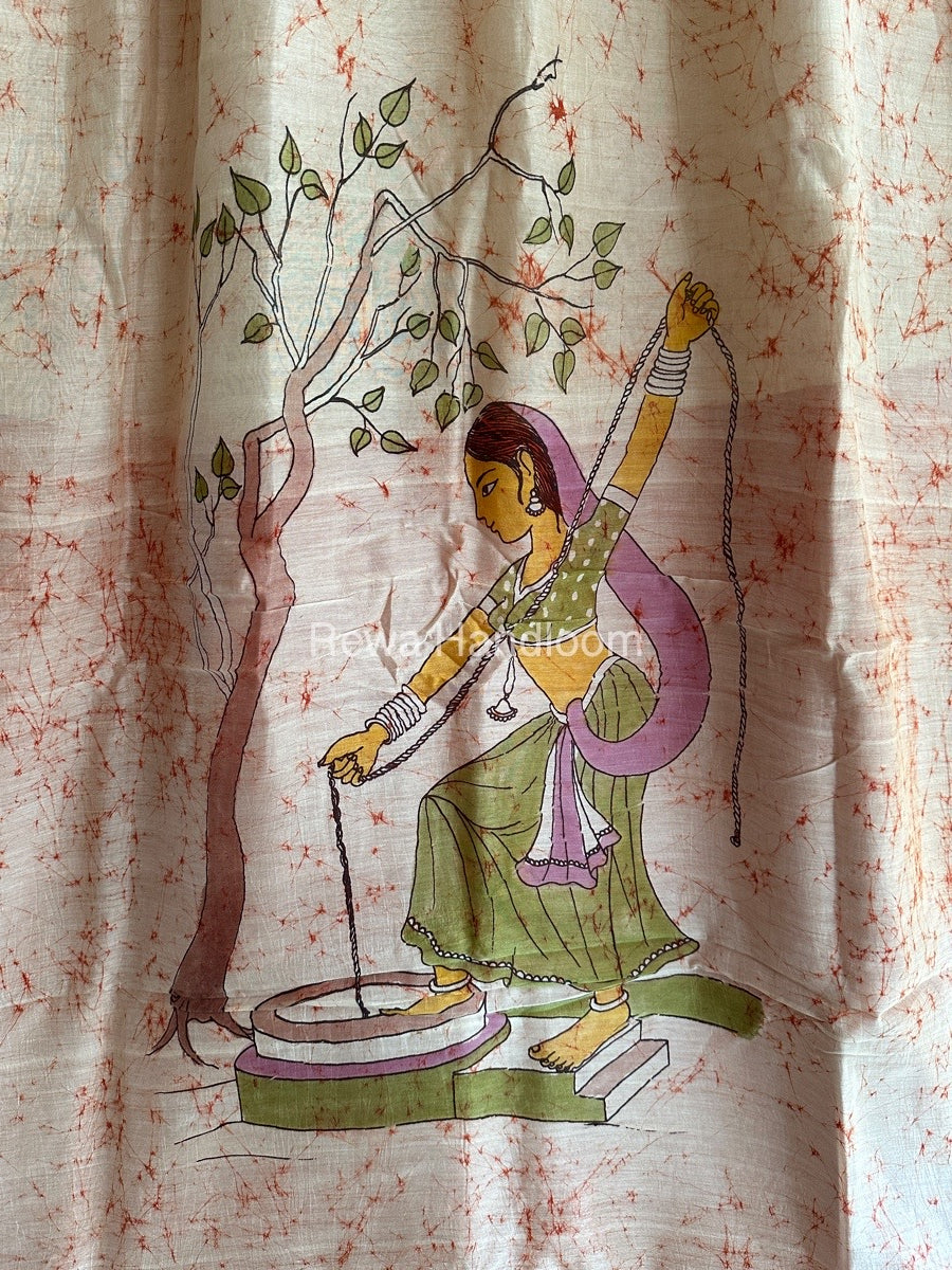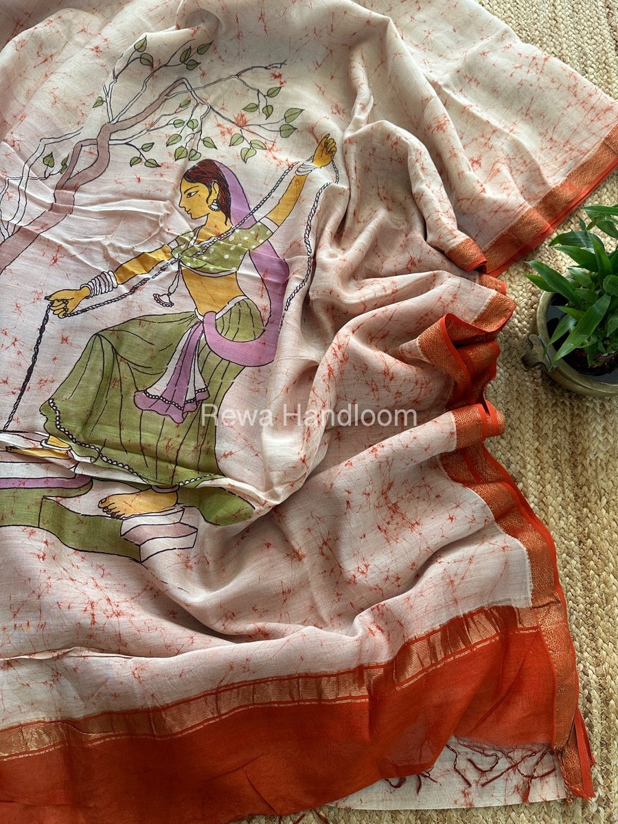 Maheshwari Batik Figure Handpainted Saree