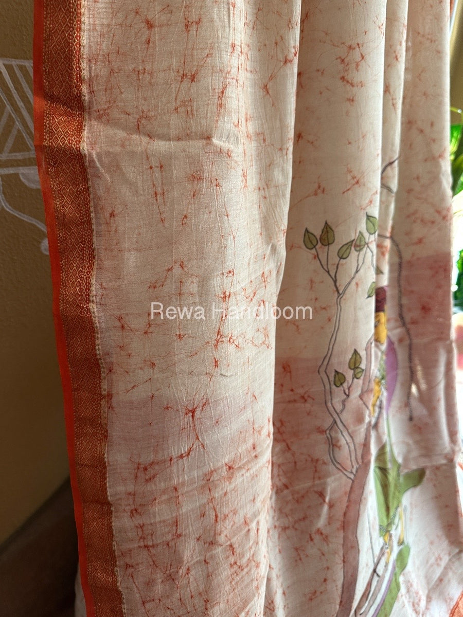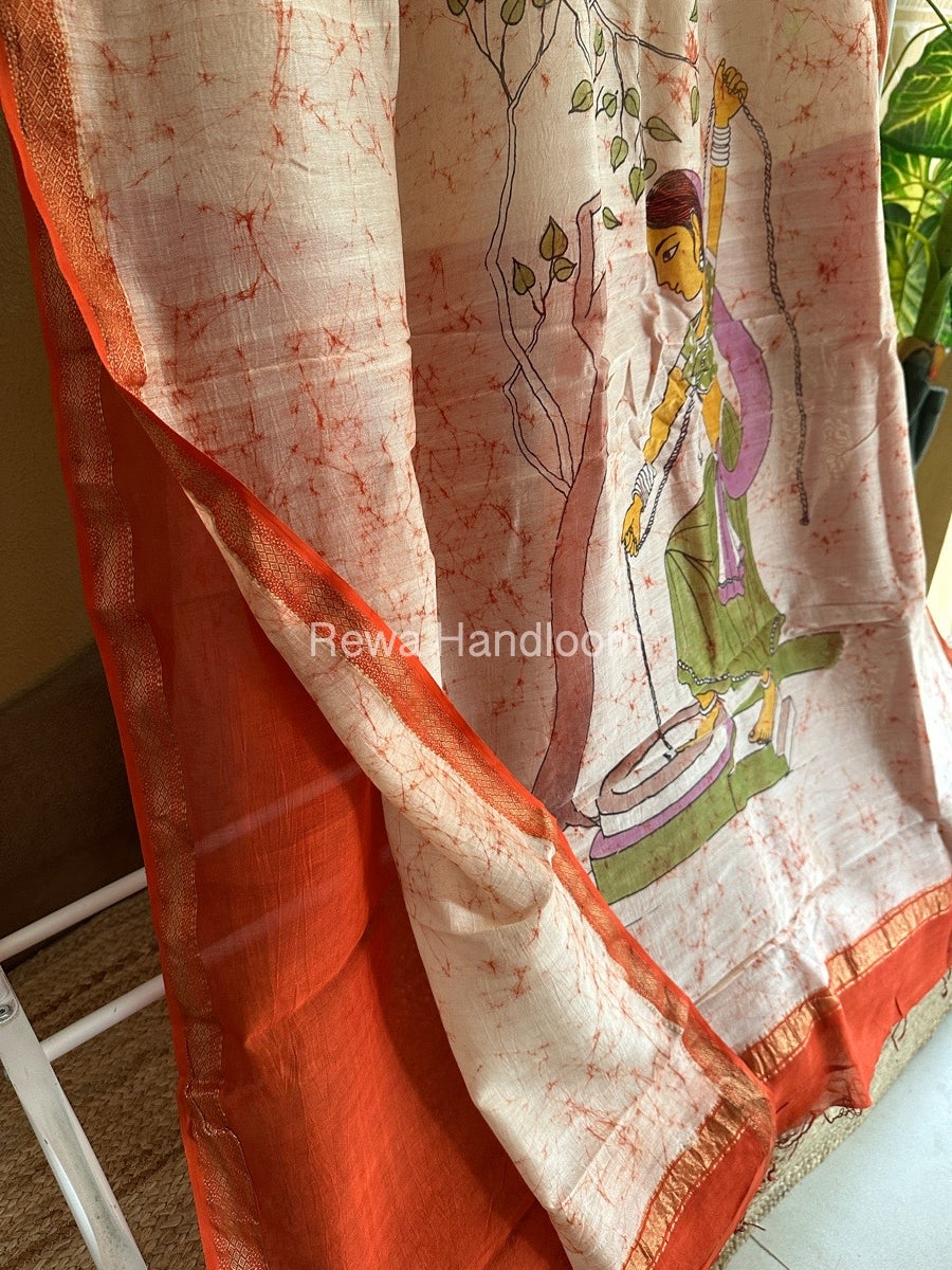 Maheshwari Orange Batik Figure Handpainted Saree MFPS06