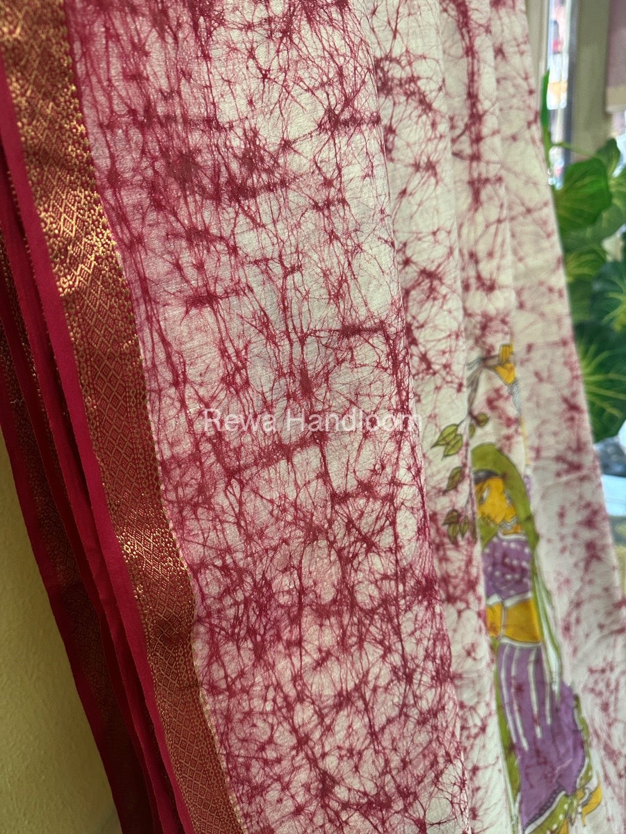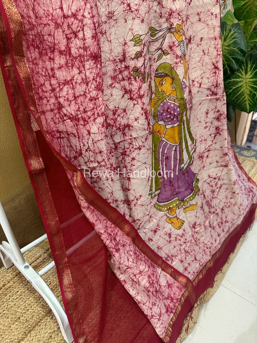 Maheshwari Pink Batik Figure Handpainted Saree MFPS09