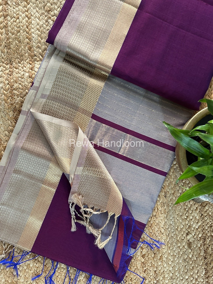 Maheshwari Purple Colour Resham Thread Border Saree RTS071