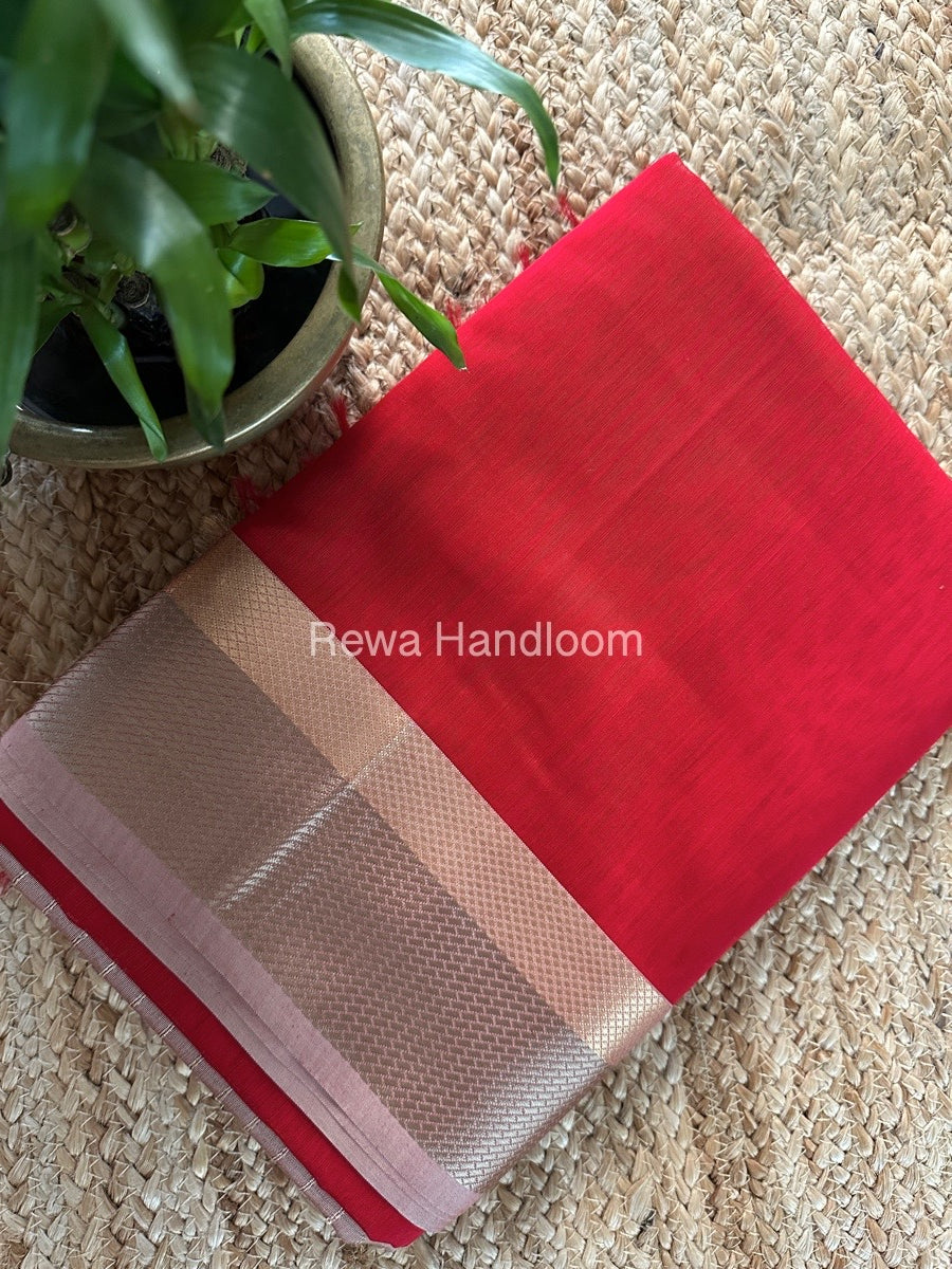 Maheshwari Red Resham Thread Border Saree RTS069
