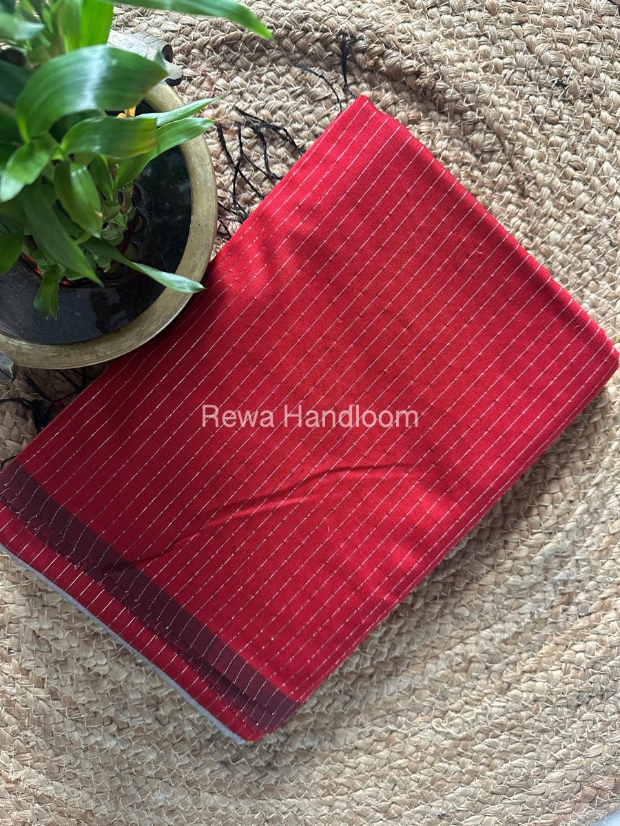 Maheshwari Red Silver Tissue Lining Saree TSLS03