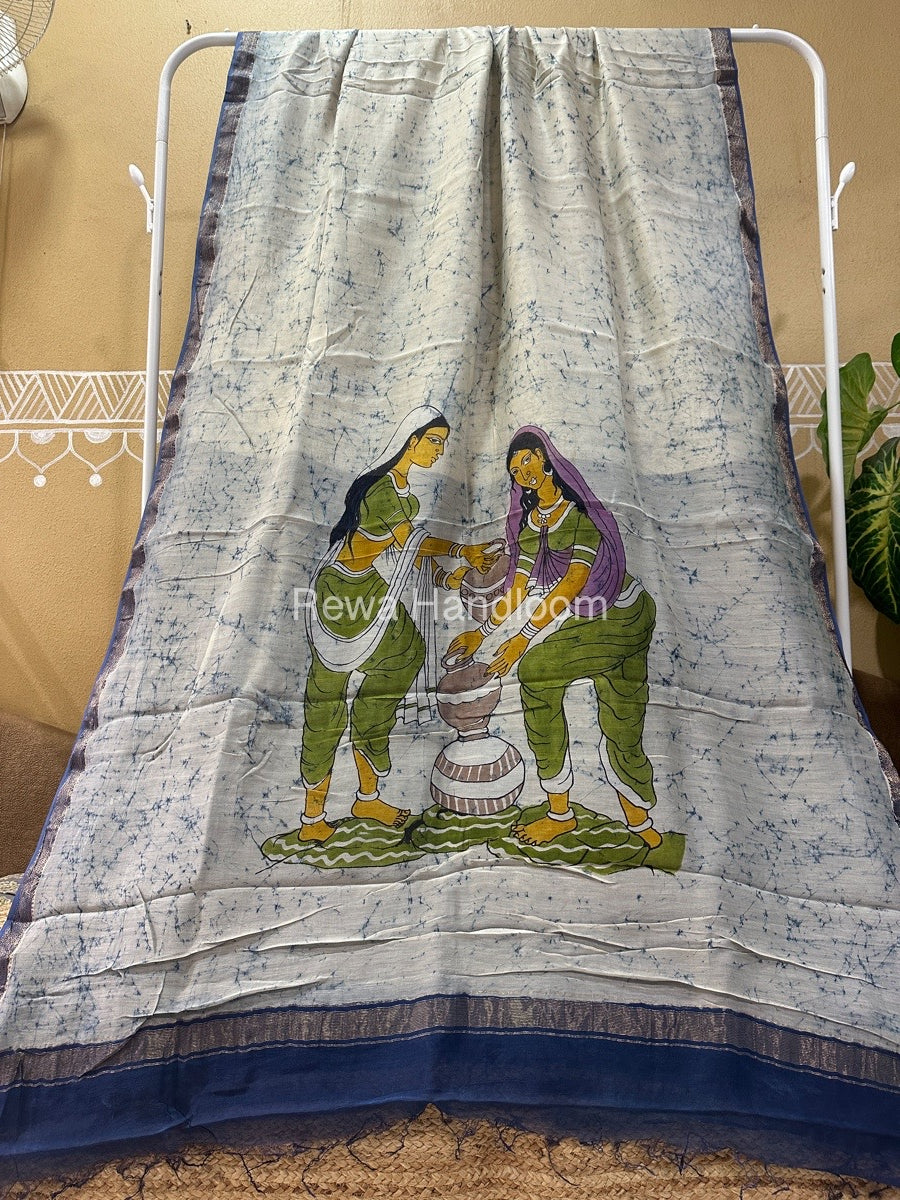 Maheshwari Batik Figure Handpainted Saree