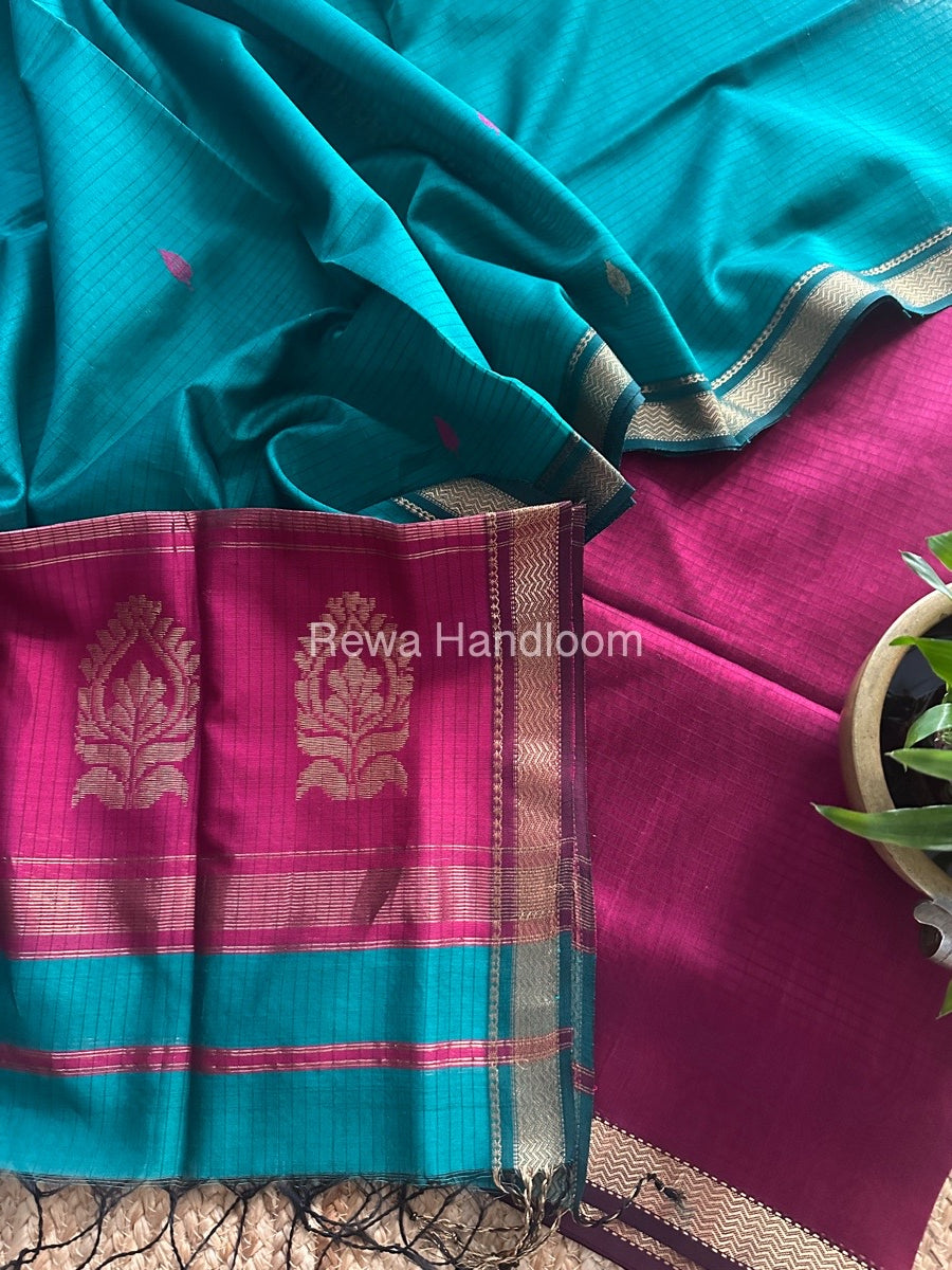Maheshwari Rani Pink-Rama Green Motifs Top-Dupatta Set MS0165