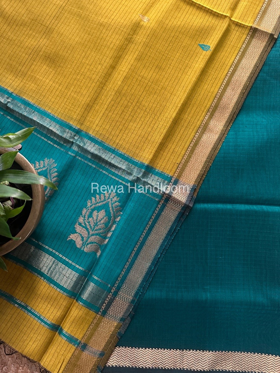 Maheshwari Sea Green-Yellow Motifs Top-Dupatta Set MS0166