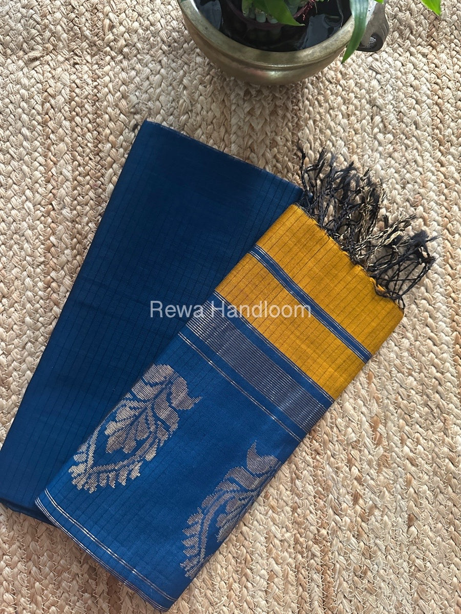 Maheshwari Shades Blue-Mustard Yellow Motifs Top-Dupatta Set MS0164
