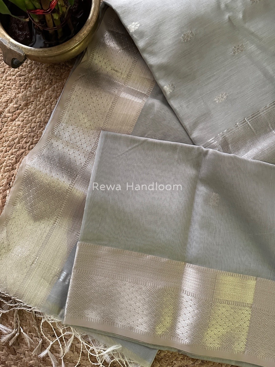 Maheshwari Grey Silver Butti Saree SGSB03