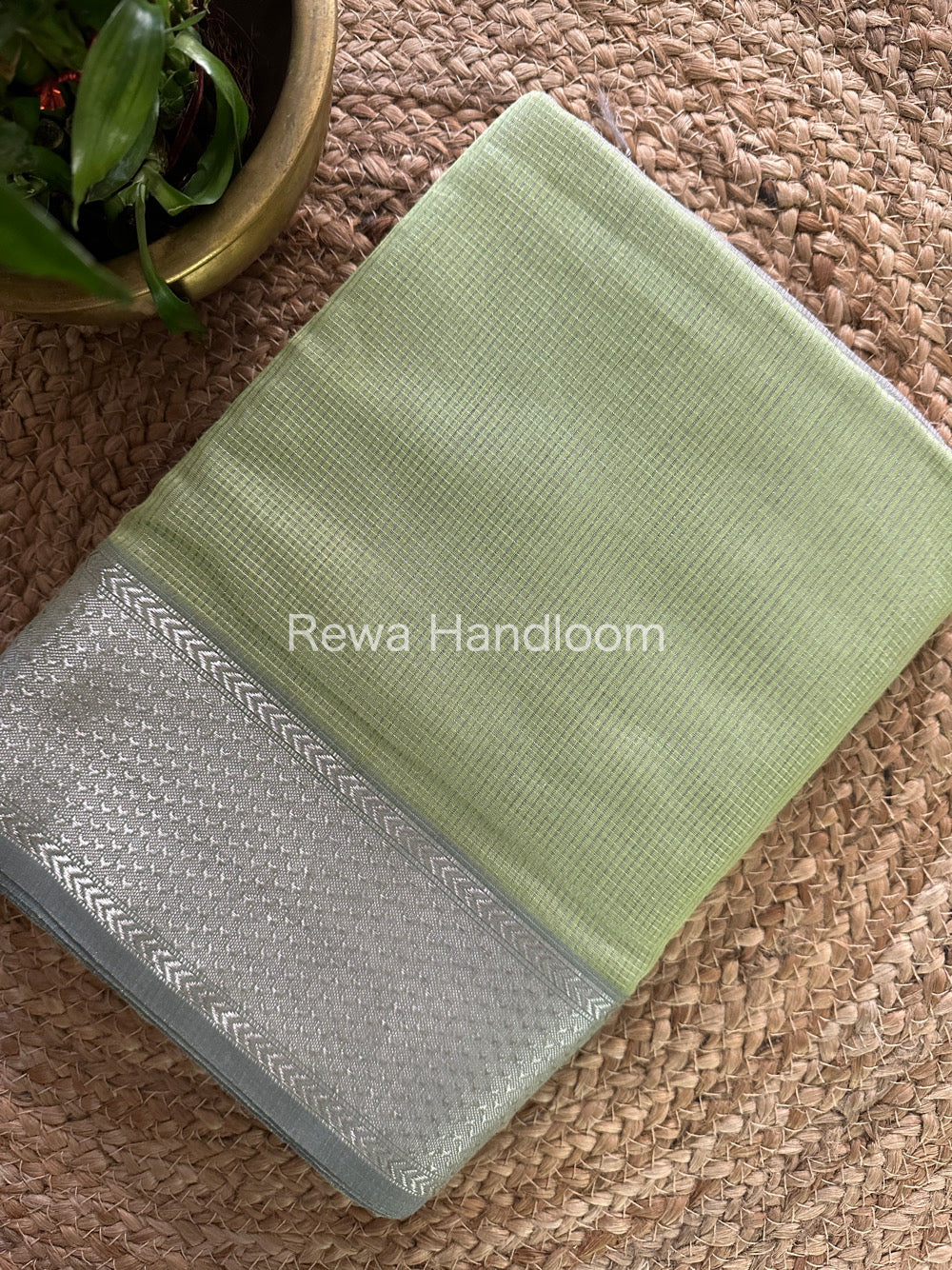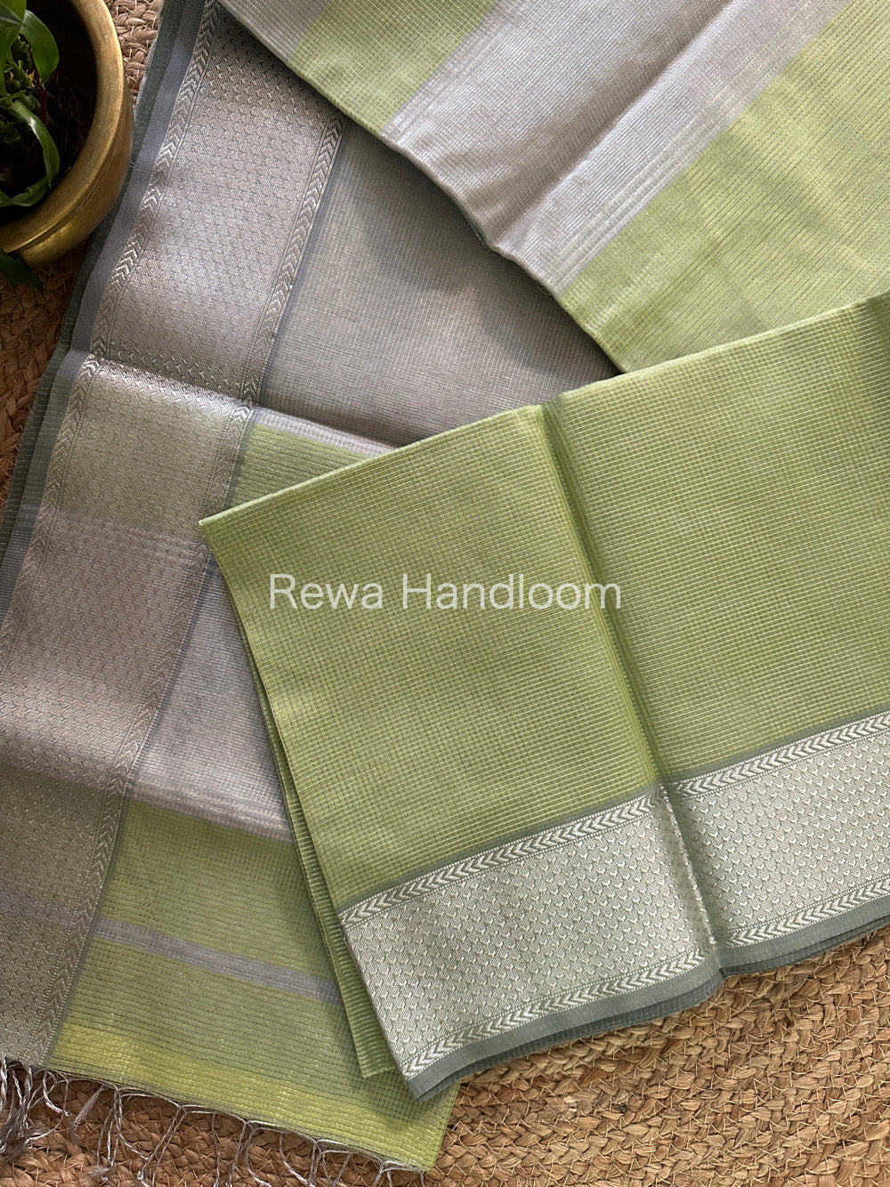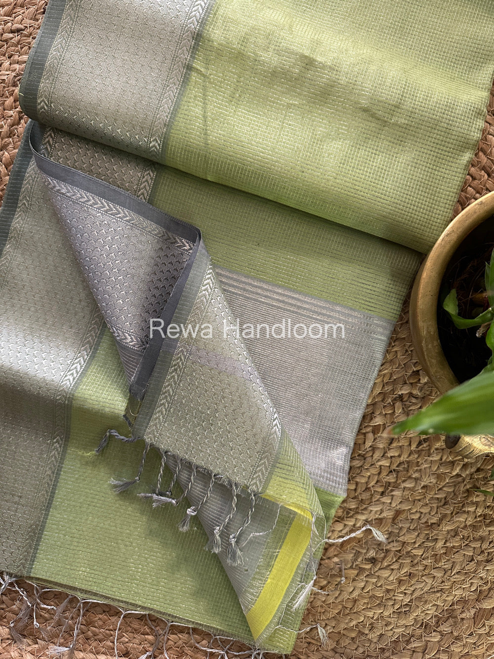 Maheshwari Parrot Green Tissue Silk Saree-SPS13