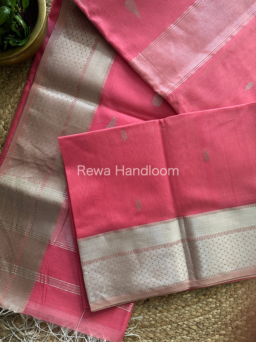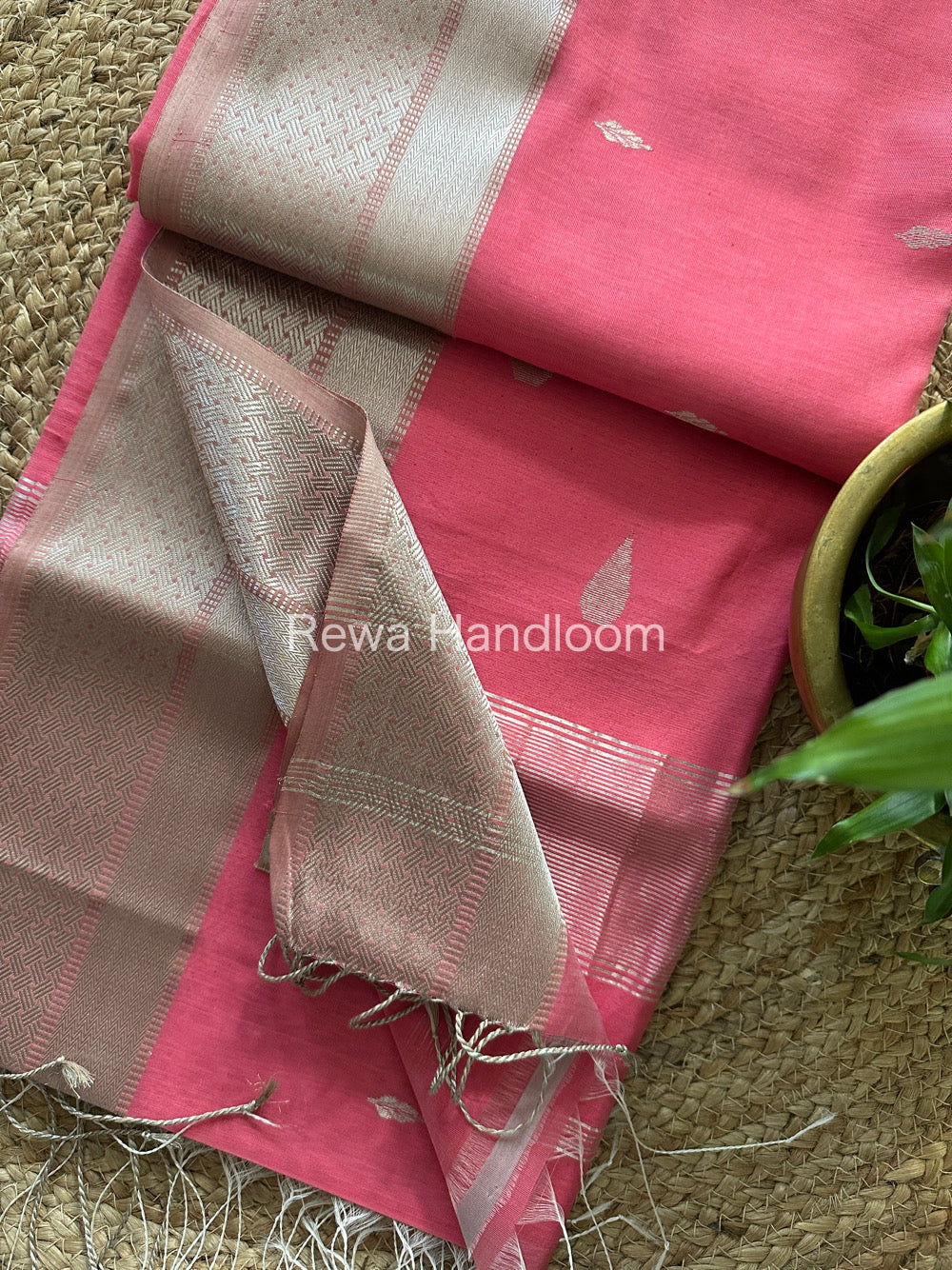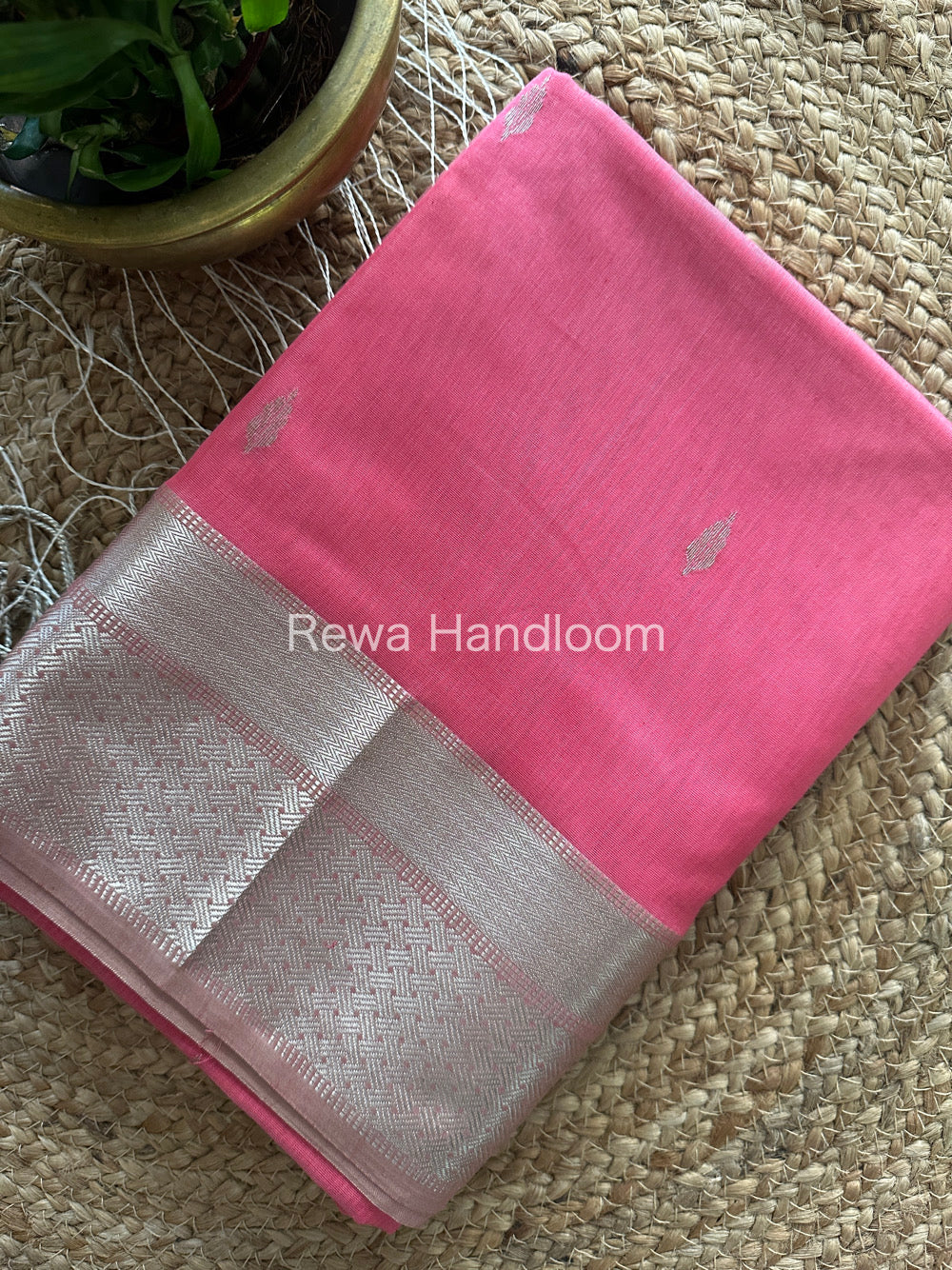 Maheshwari Pink Silver Zari Buta-Buti Saree SBP13