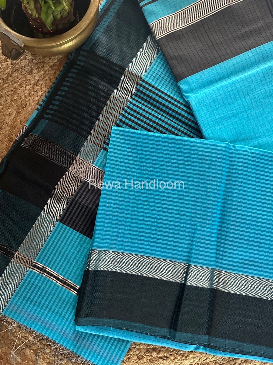 Maheshwari Sky Blue Resham Thread Border Saree RTBS09