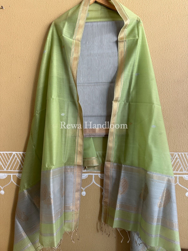 A standard Maheshwari unstitched suit set usually includes around 2.5 meters for the kurta, 2–2.5 meters for the bottom, and about 2.25 meters for the dupatta. This is enough for custom tailoring in most sizes