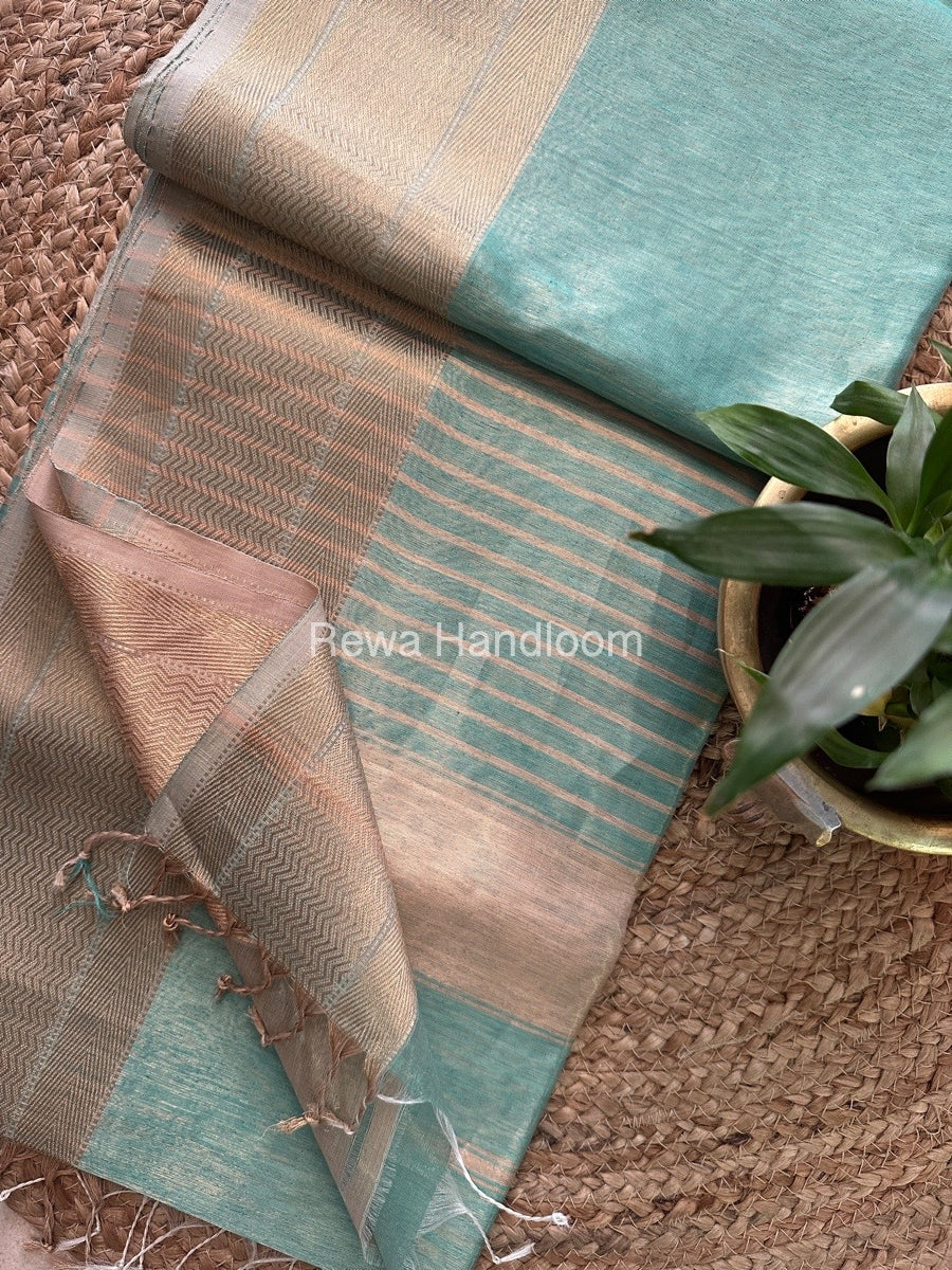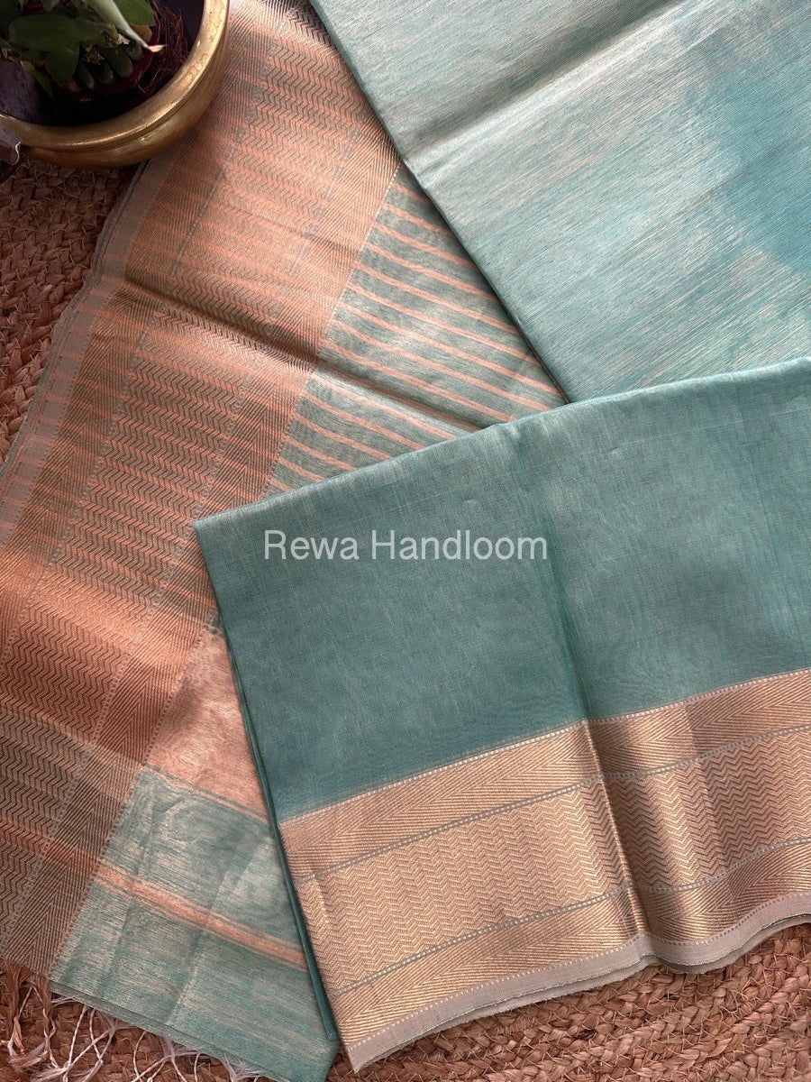 Maheshwari Aqua Green Tissue Silk Saree FTS06
