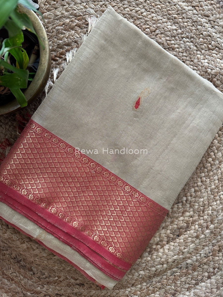 Maheshwari Beige Tissue Meena Butti Saree GMB007