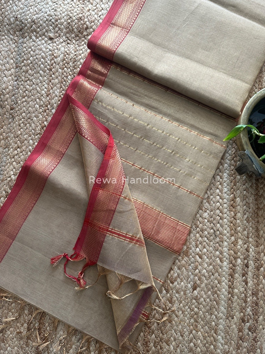 Maheshwari Beige Tissue Silk Saree TB011