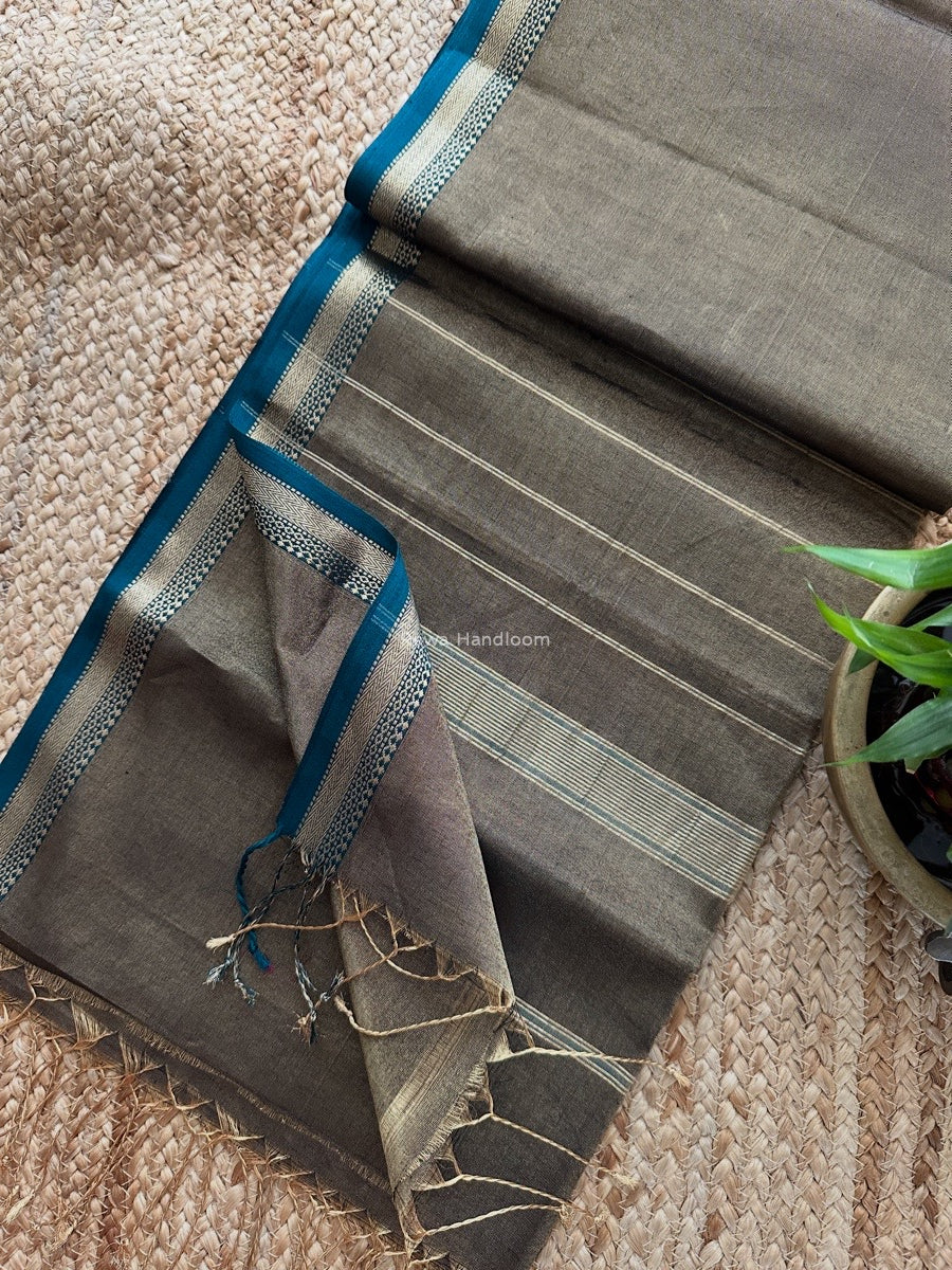 Maheshwari Black Tissue Silk Saree TB024