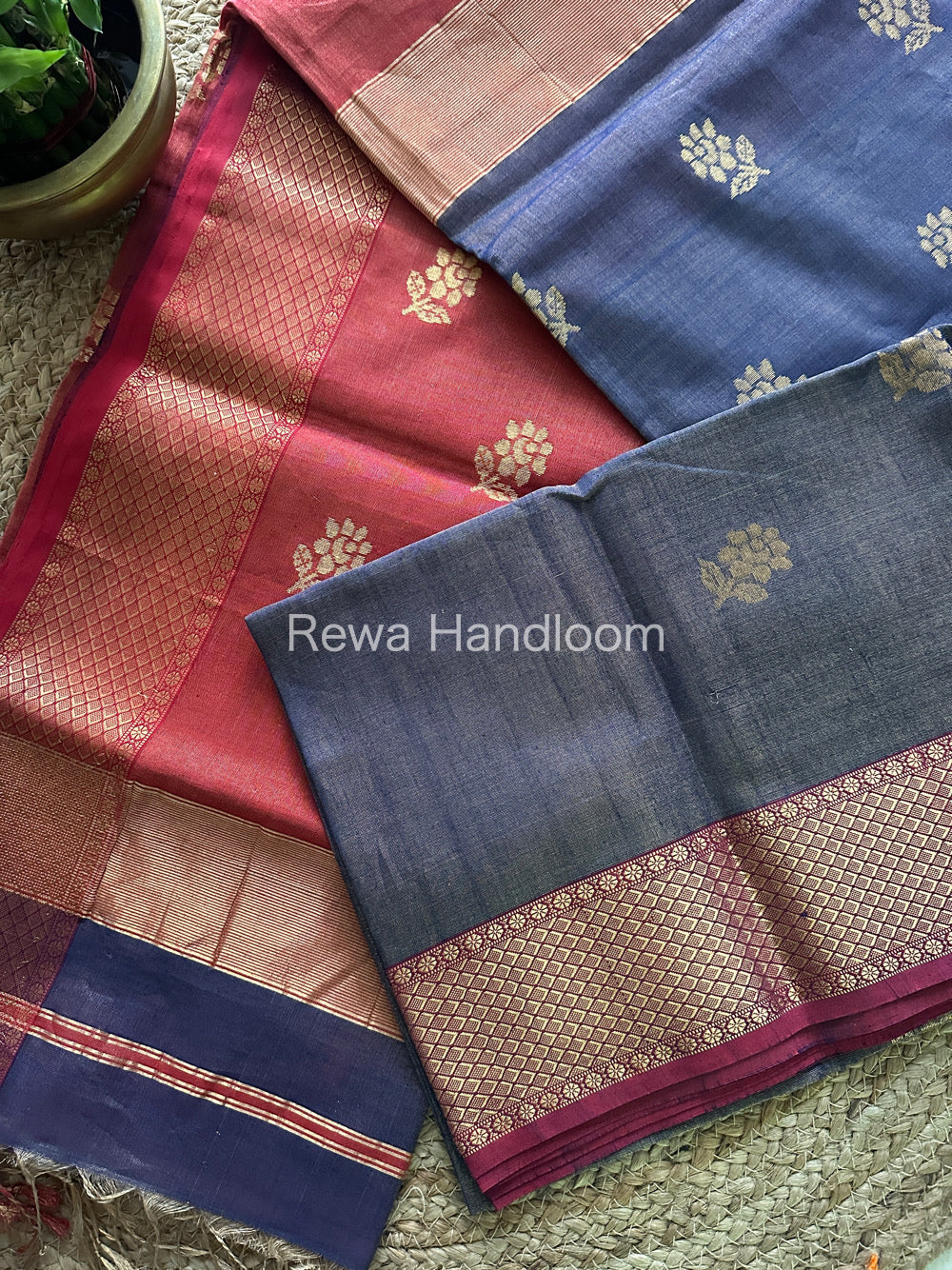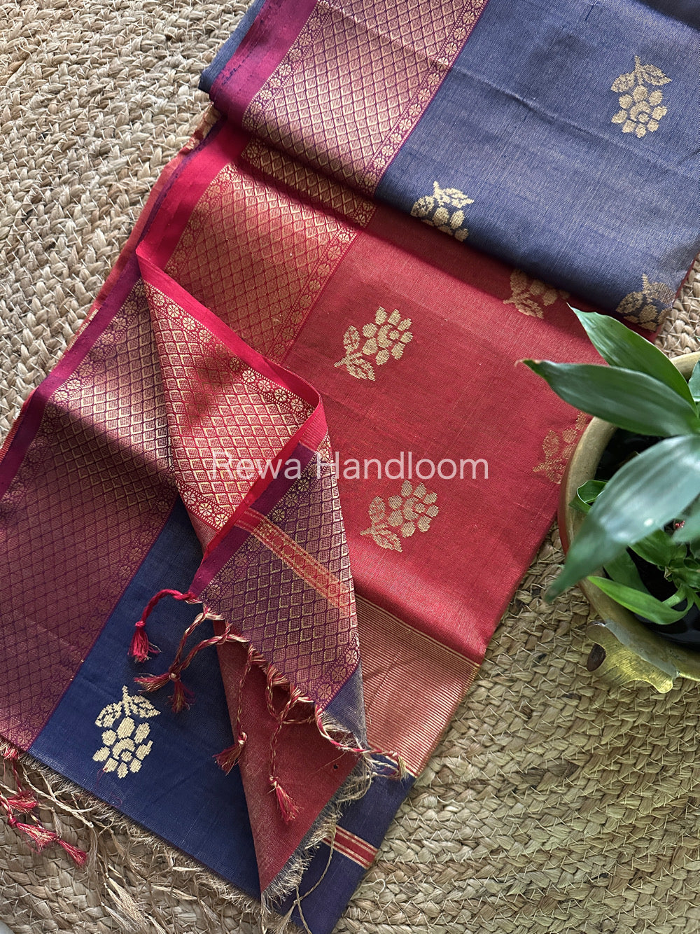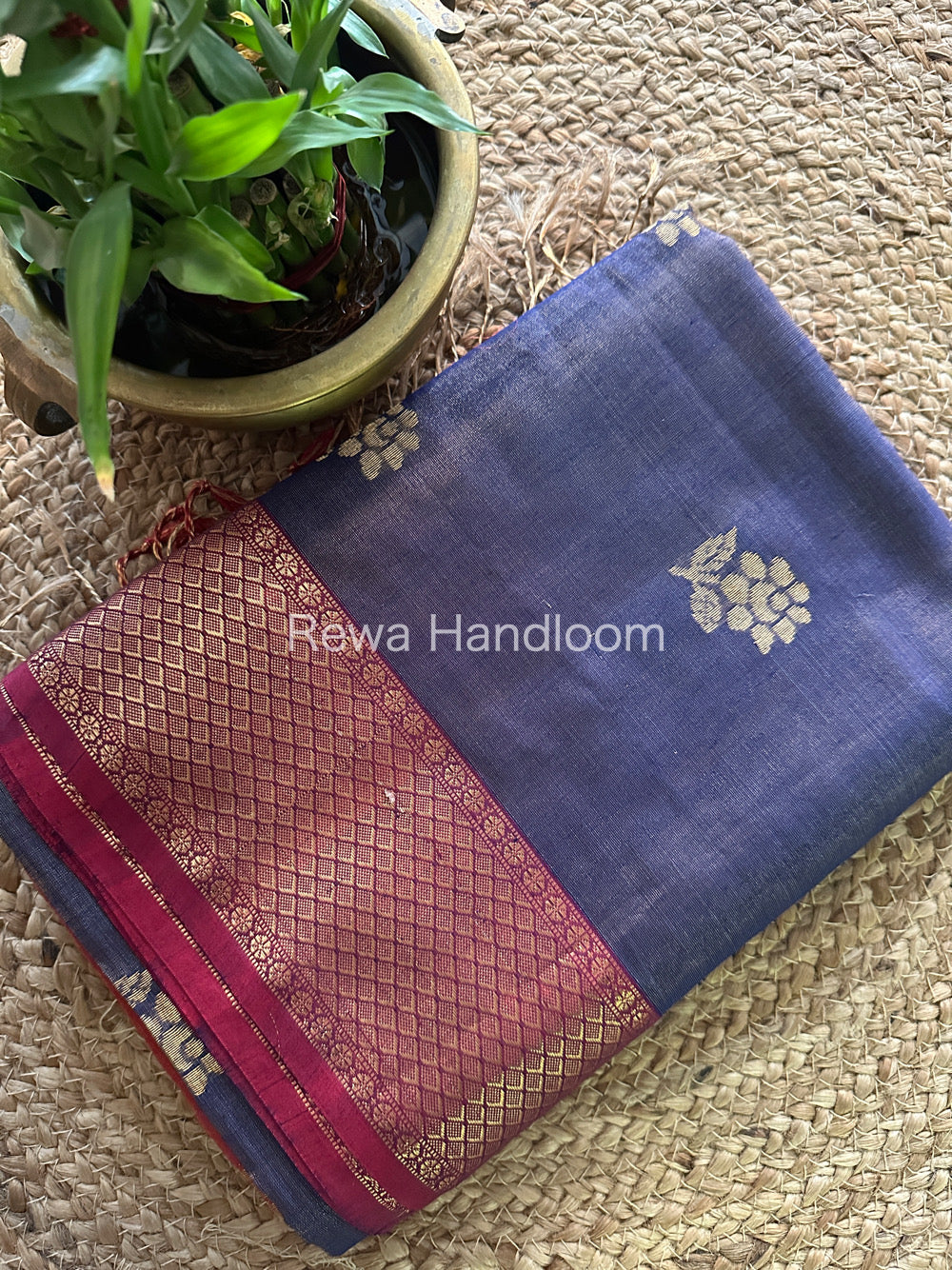 Maheshwari Blue Tissue Silk Saree-TFB013