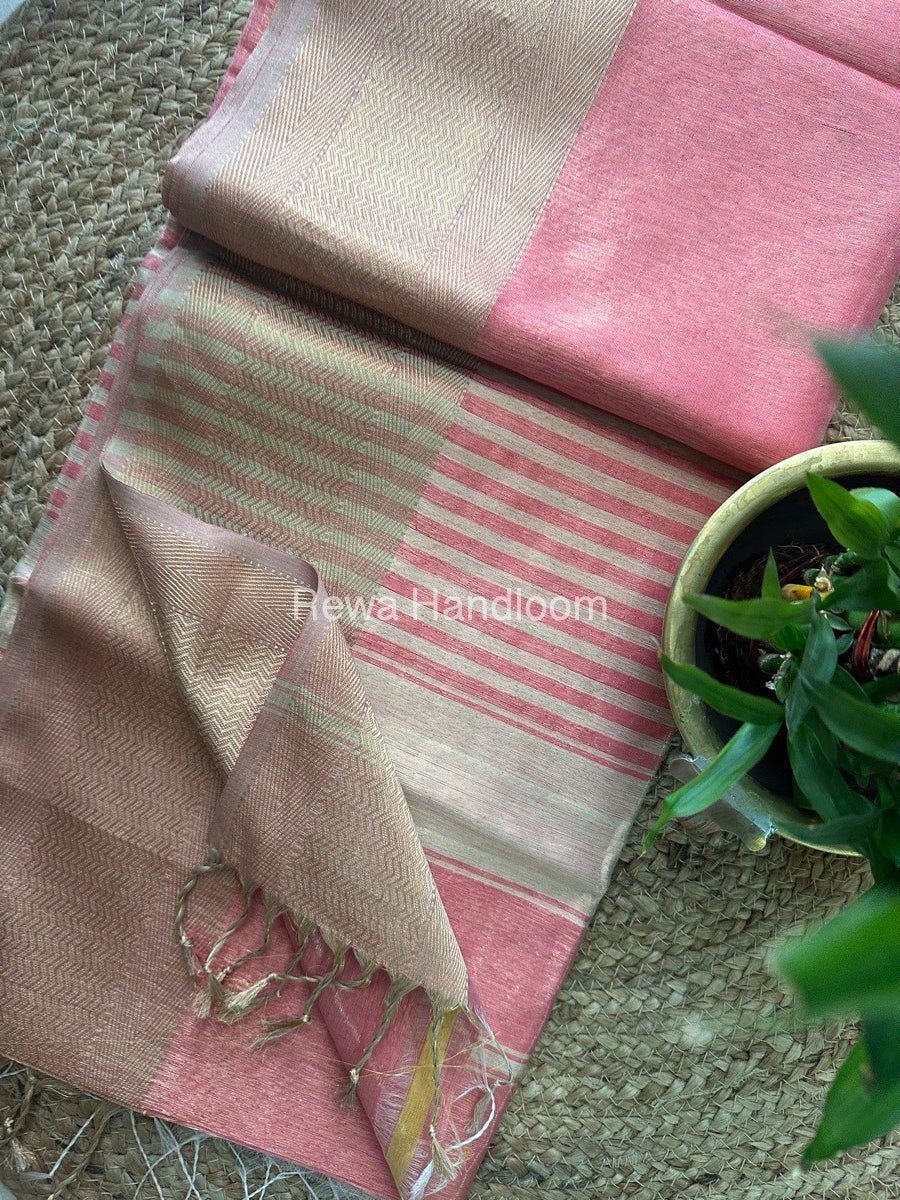 Maheshwari Dark Peach Tissue Silk Saree FTS010