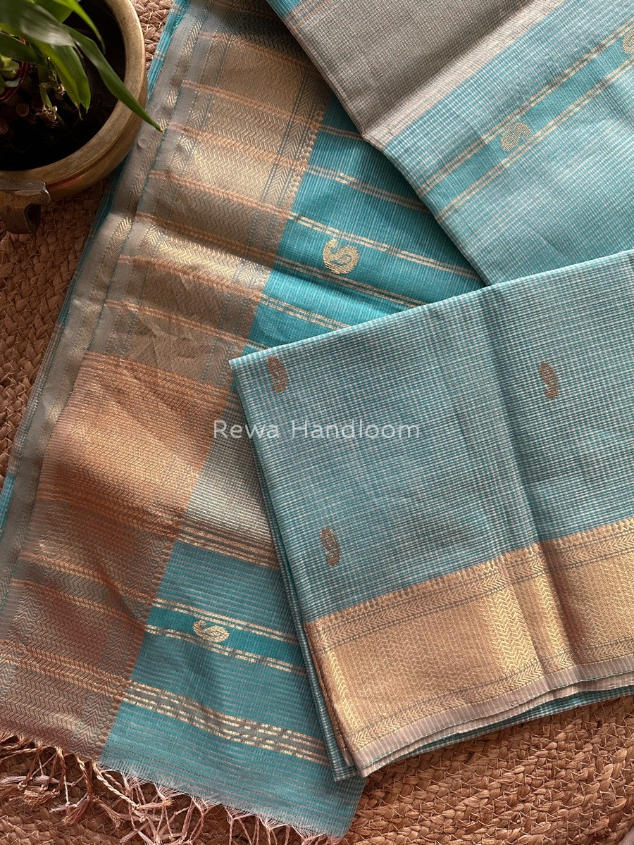 Maheshwari Firozi Tissue Butti Saree TKB05
