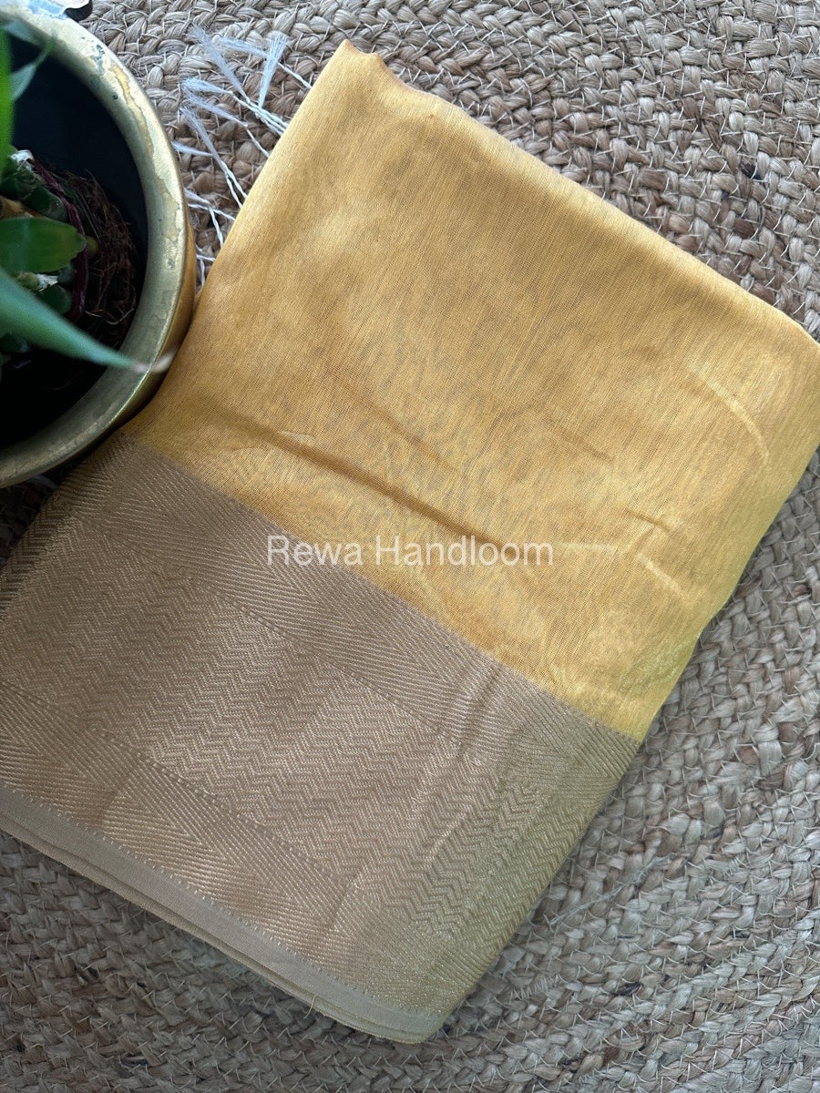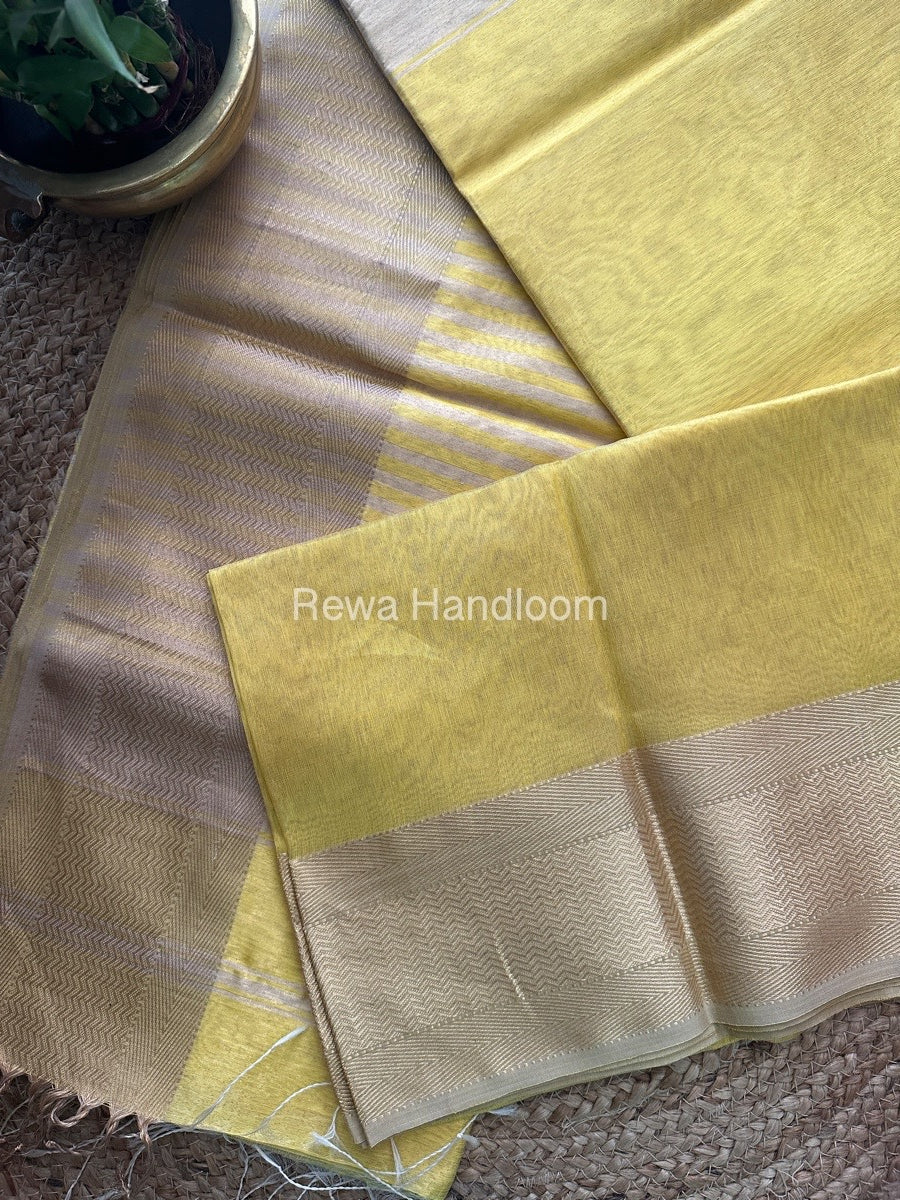 Maheshwari Golden Yellow Tissue Silk Saree FTS01
