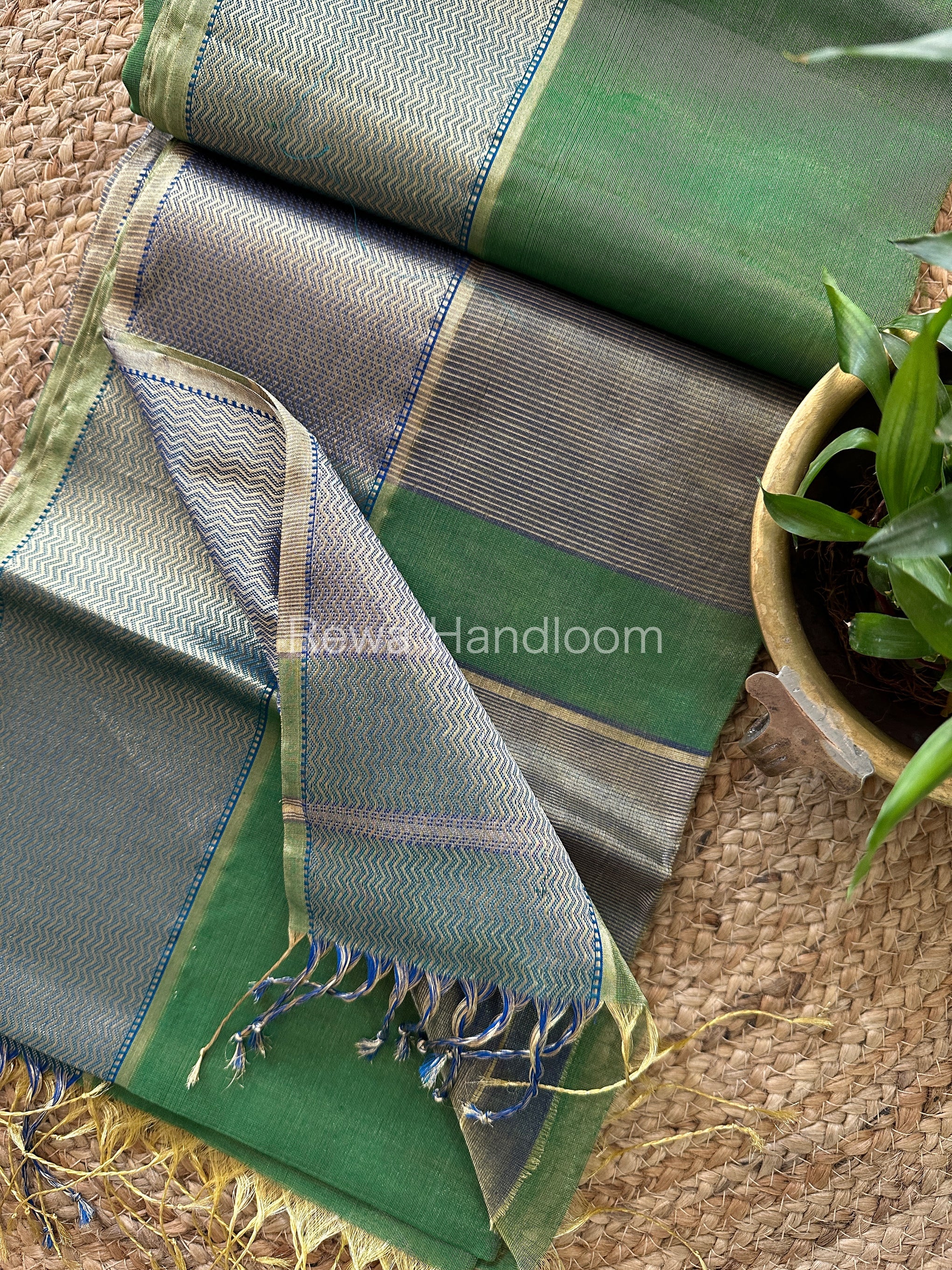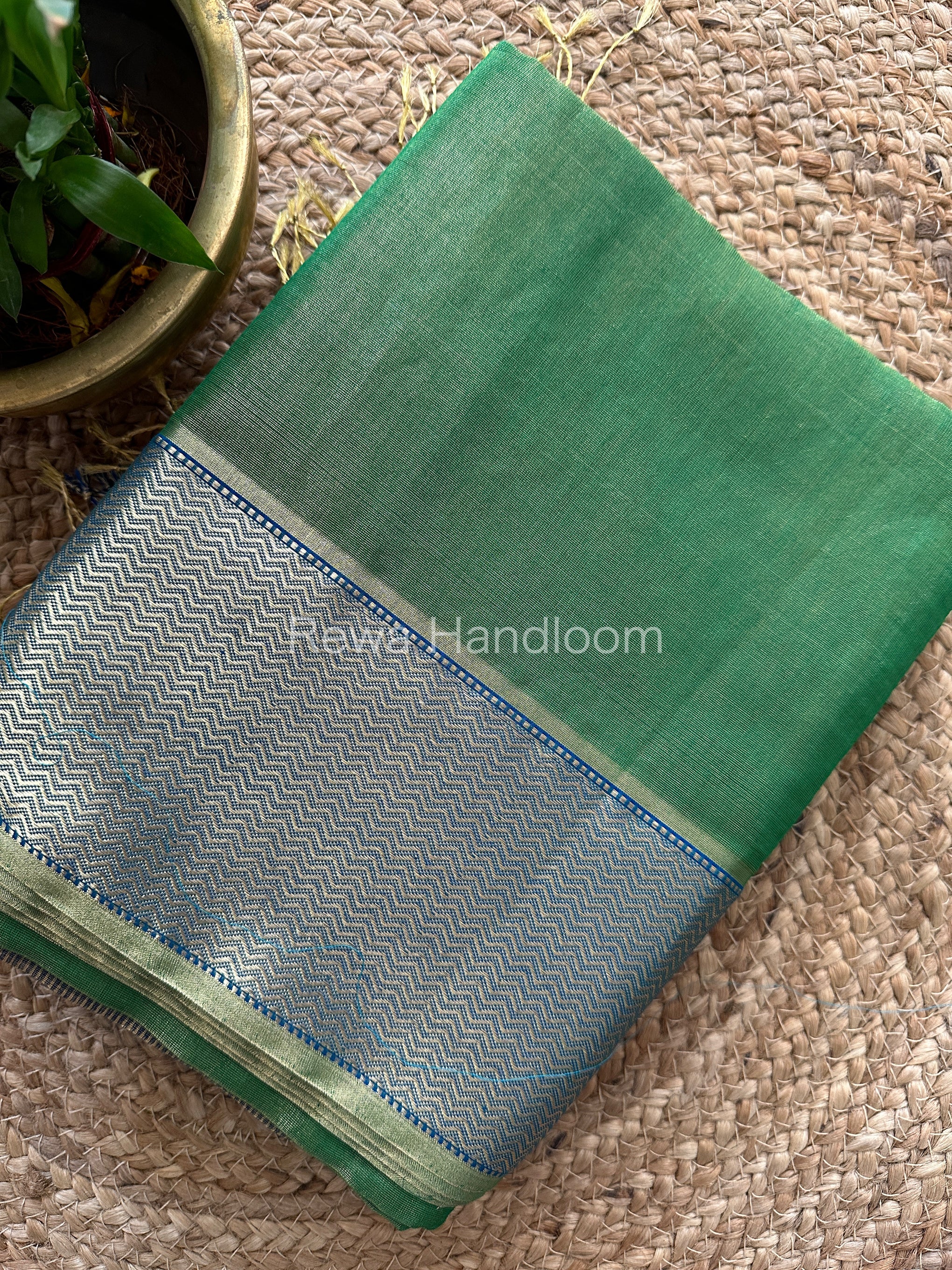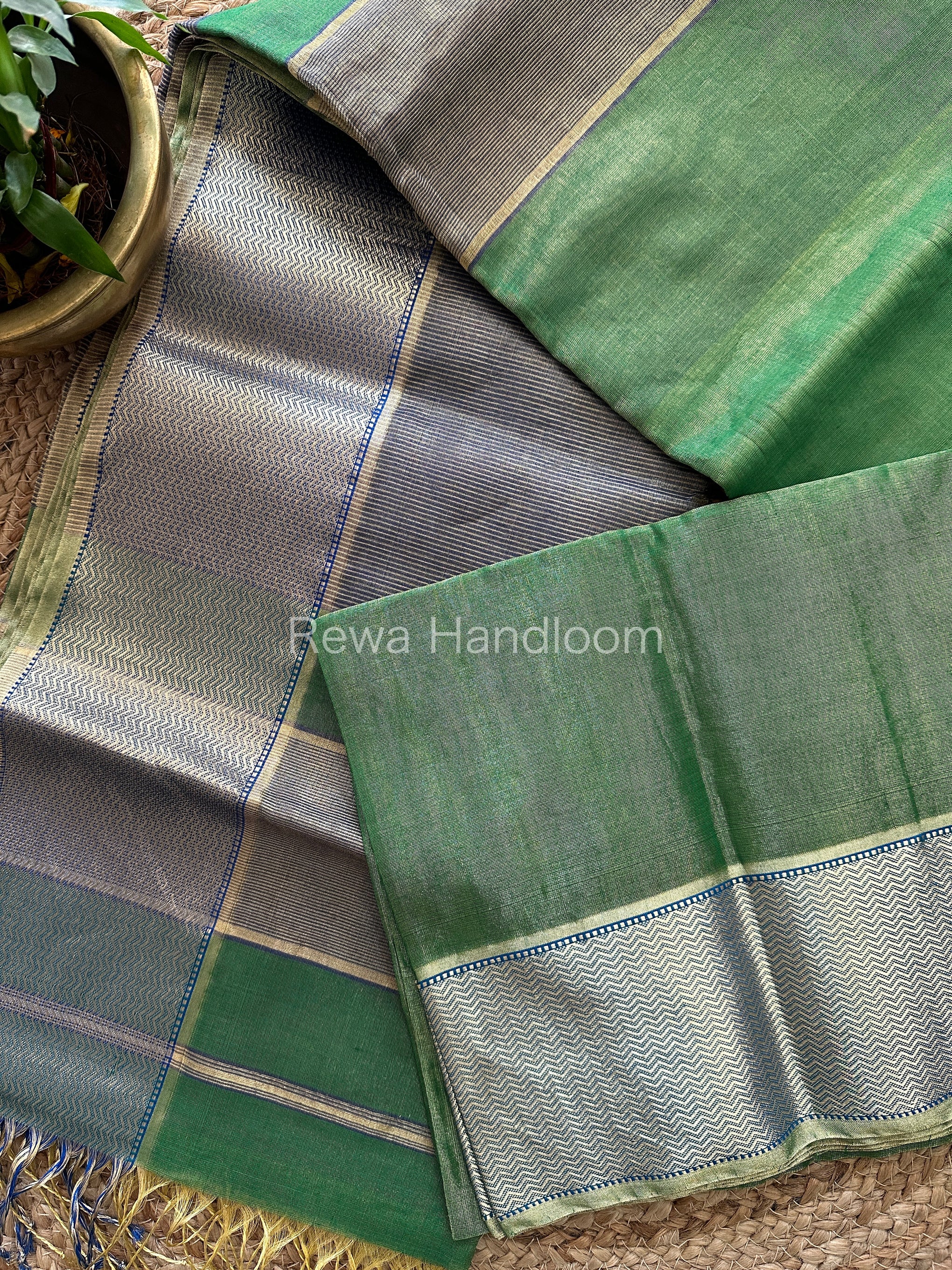 Maheshwari Green Tissue Silk Saree-FT05