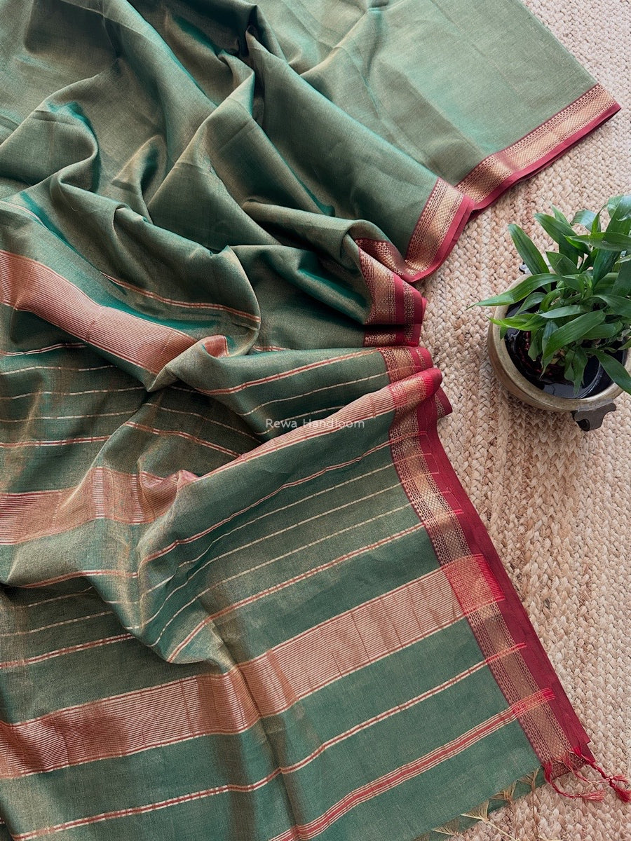 Maheshwari Green Tissue Silk Saree TB013