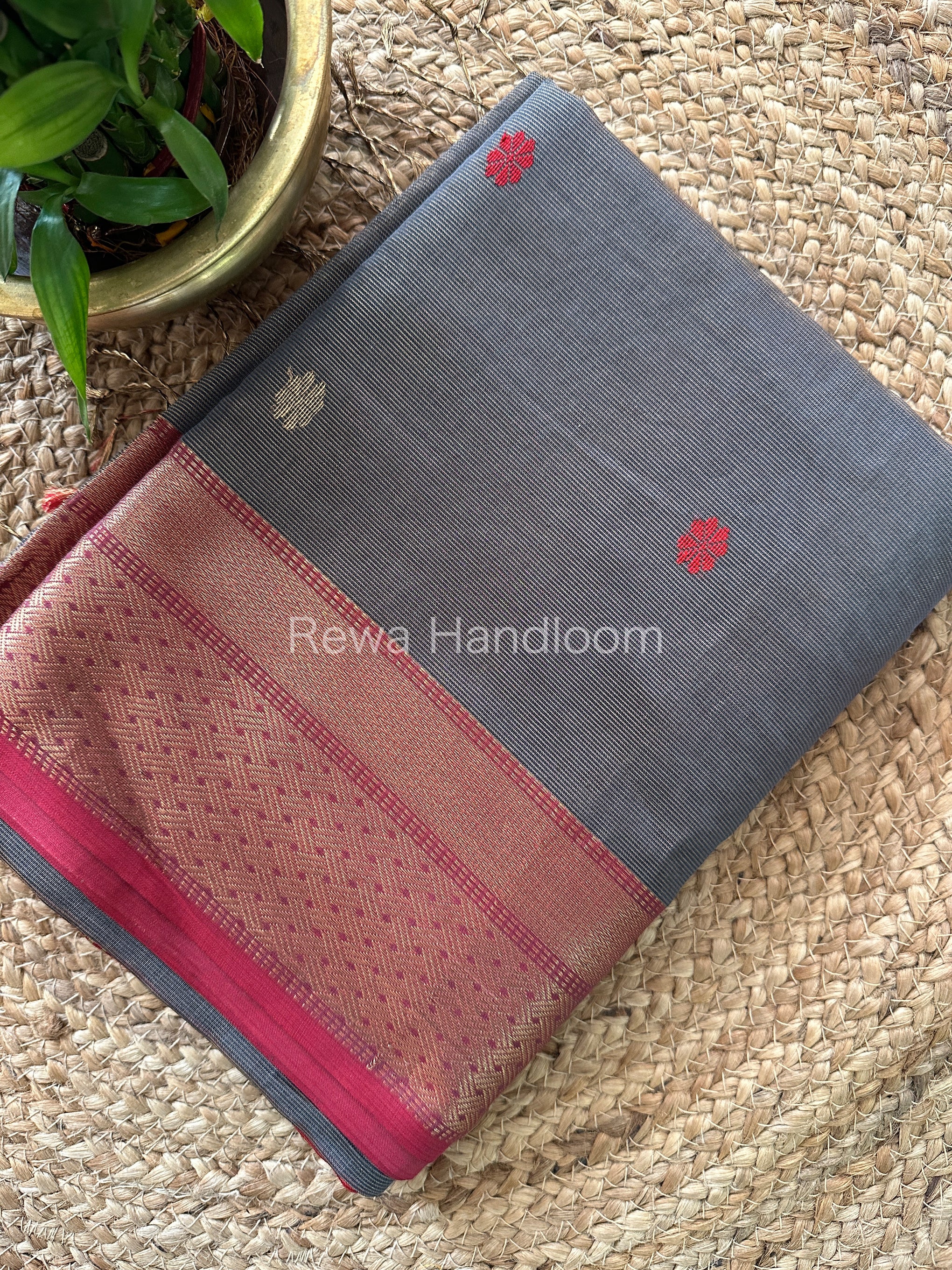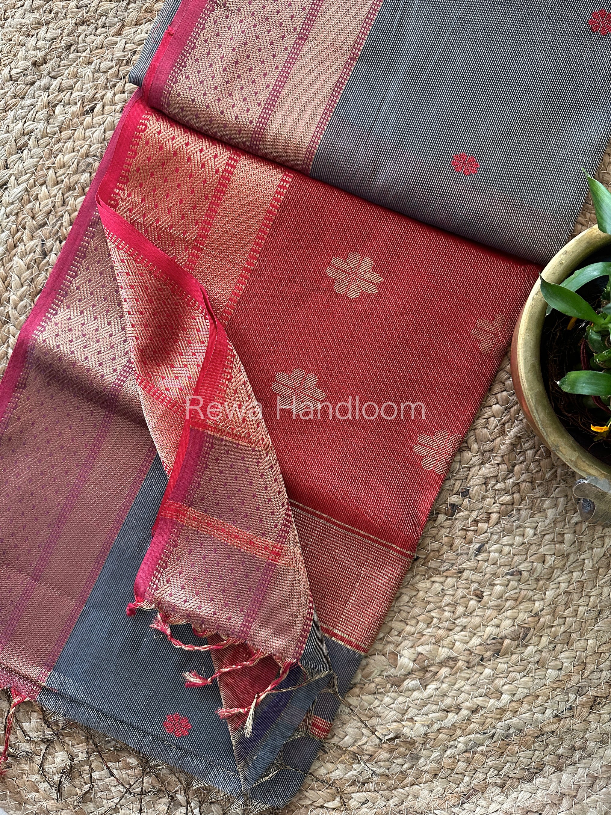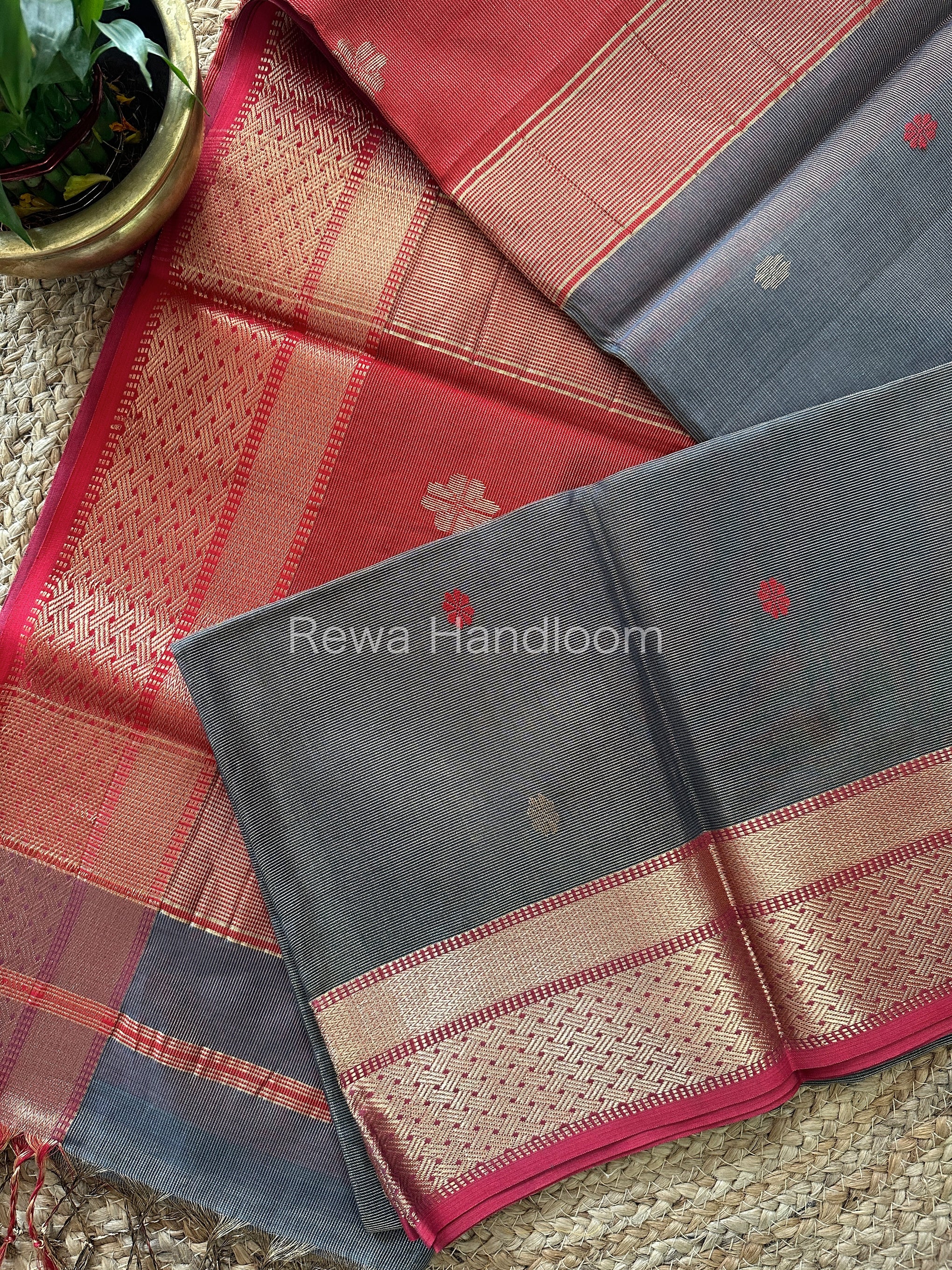 Maheshwari Grey Tissue Silk Saree-TBBS02