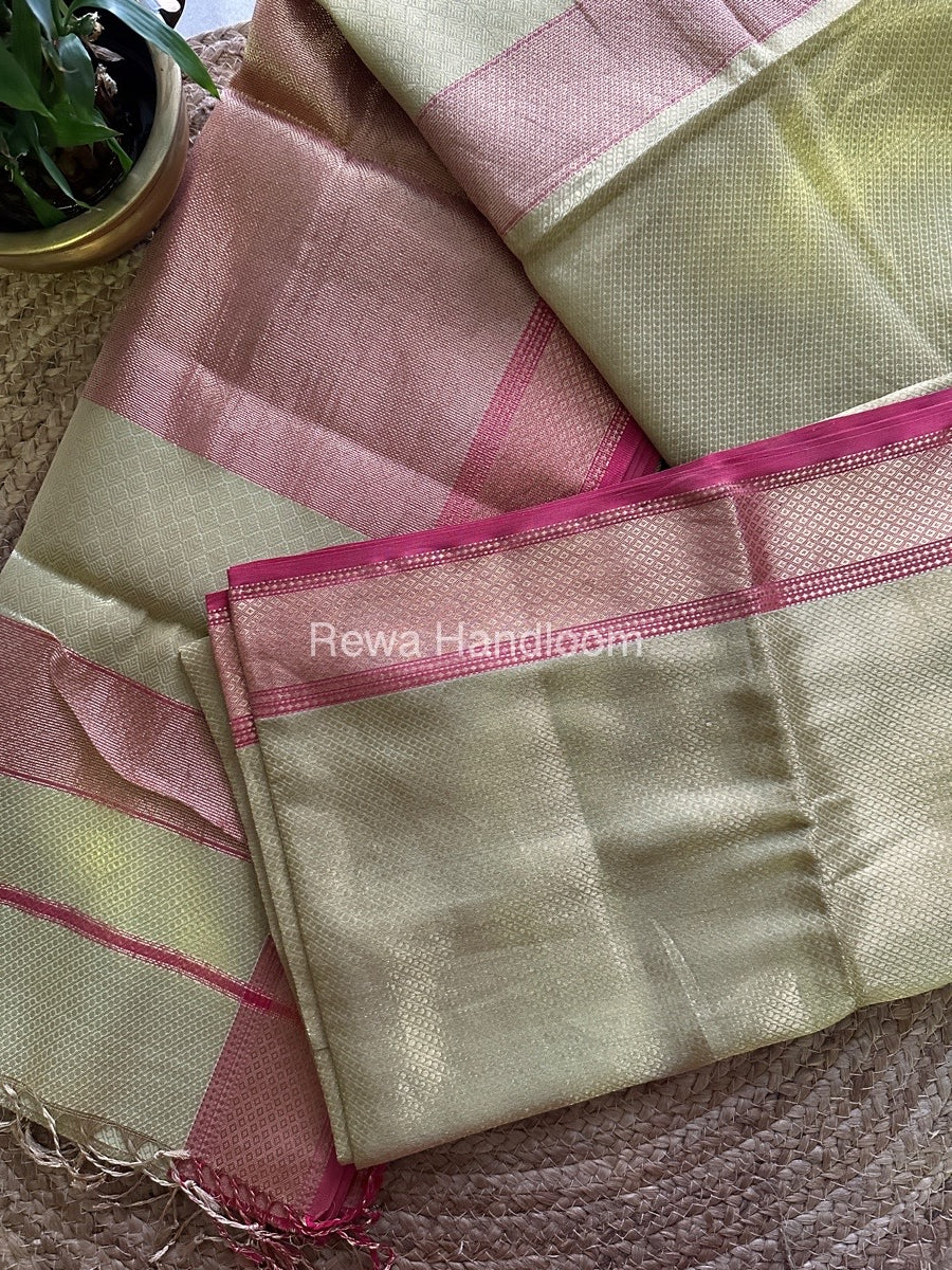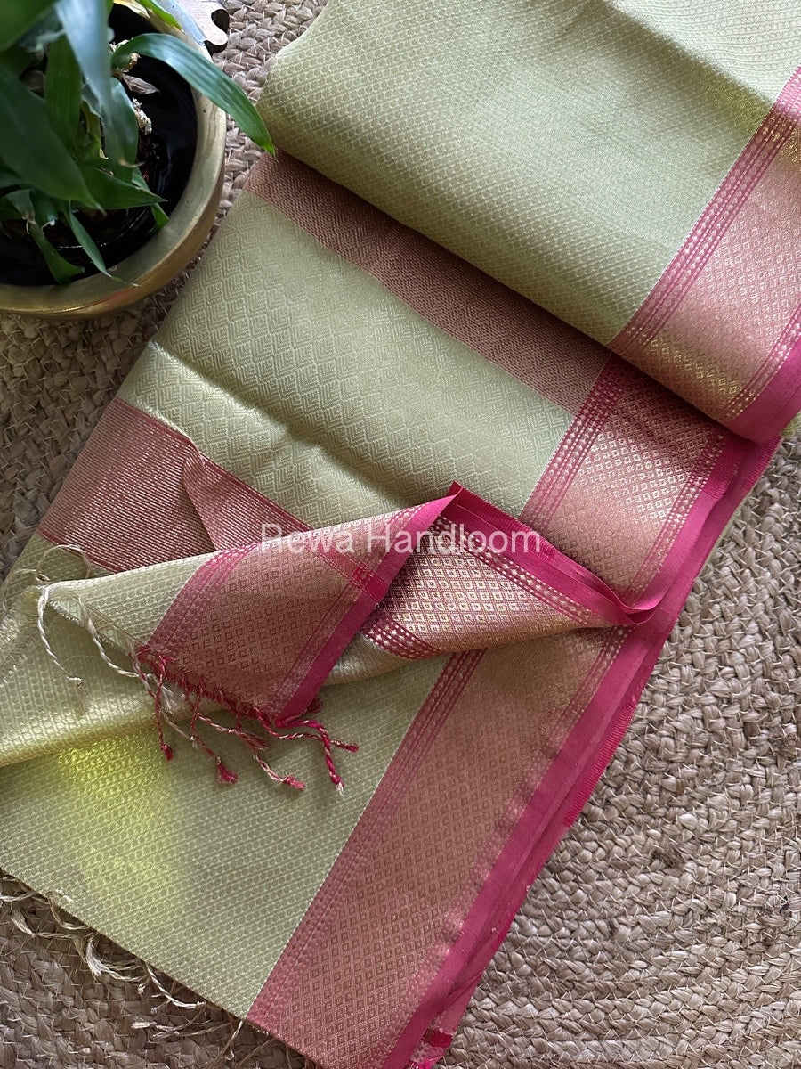 Maheshwari Light Pista Green 4 Pedal Tissue Saree FBS013